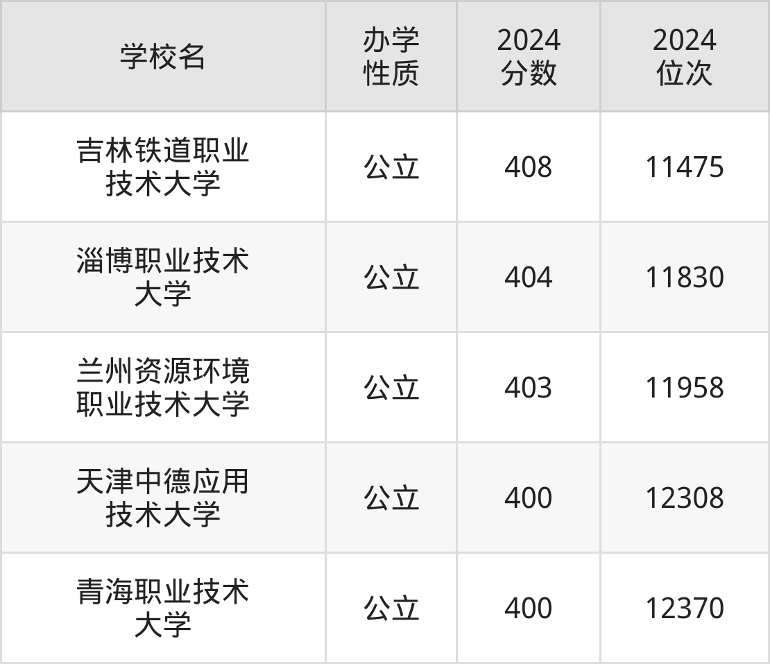 | 长春汽车职业 技术大学 | 409 | 18761 |