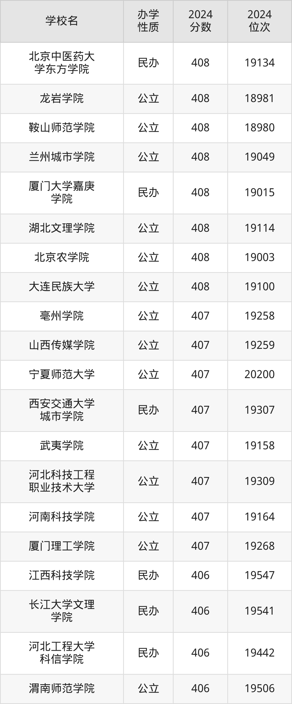 | 北京中医药大 学东方学院 | 408 | 19134 |