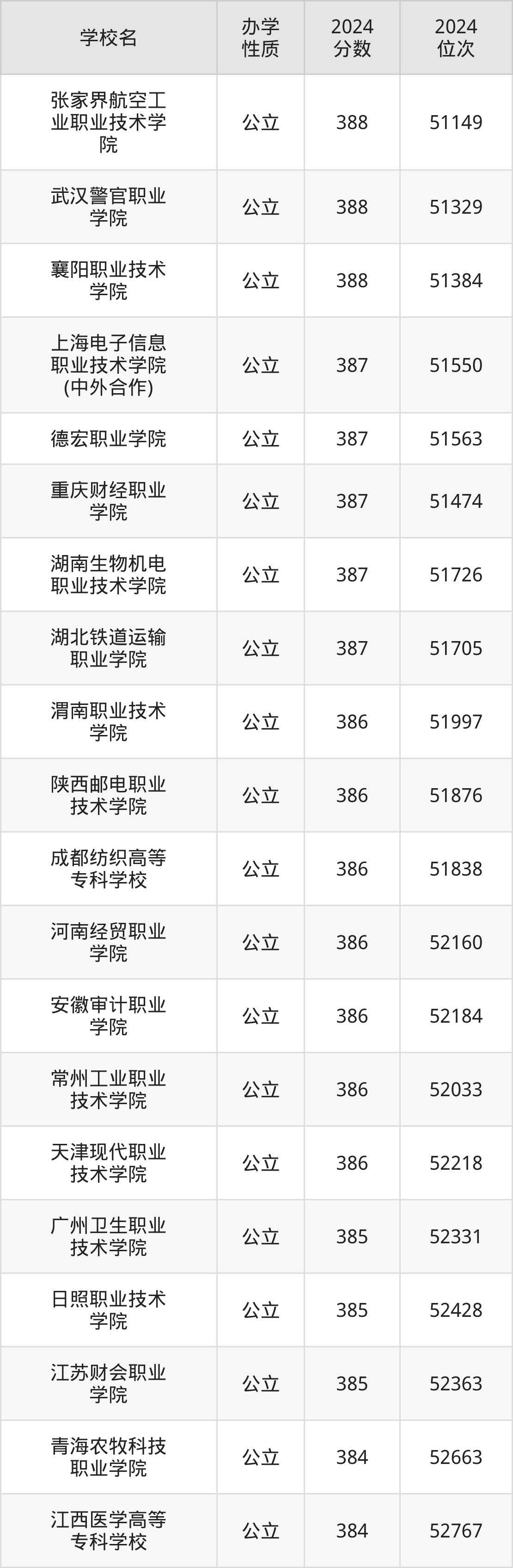 | 襄阳职业技术 学院 | 388 | 51384 |