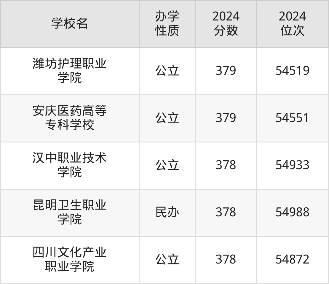 | 昆明卫生职业 学院 | 378 | 54988 |