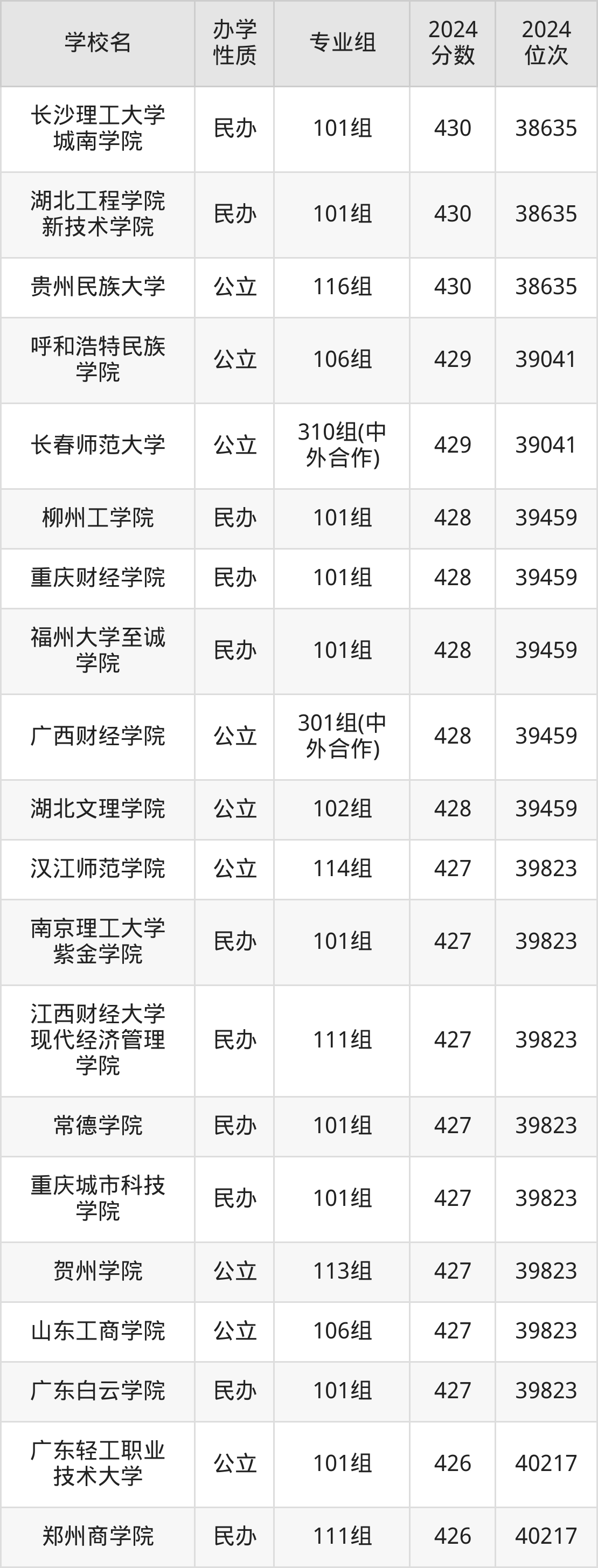 | 广西财经学院 | 301组(中 外合作) | 428 | 39459 |