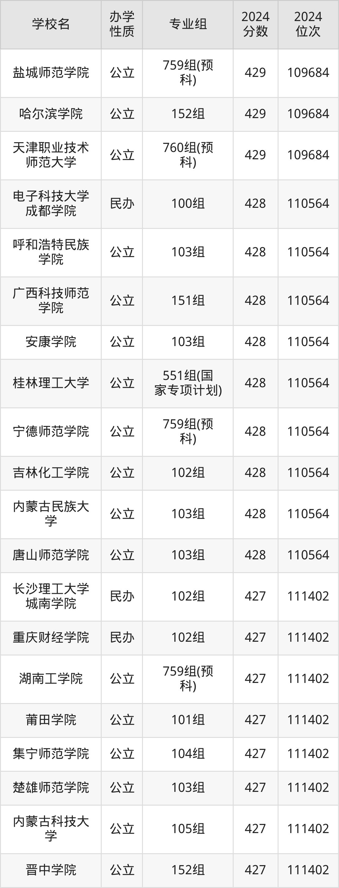 | 学校名 | 专业组 | 2024 分数 | 2024 位次 |