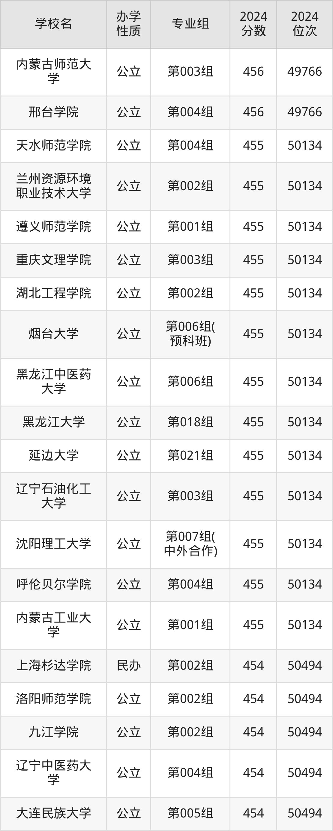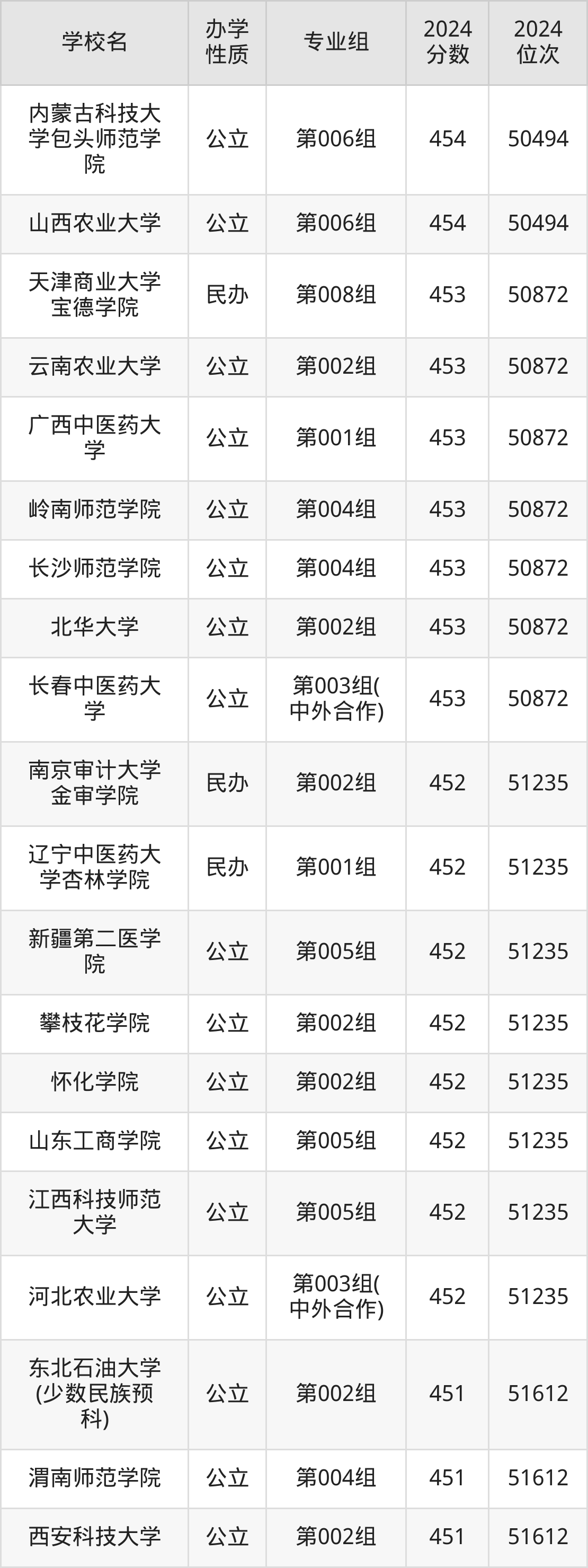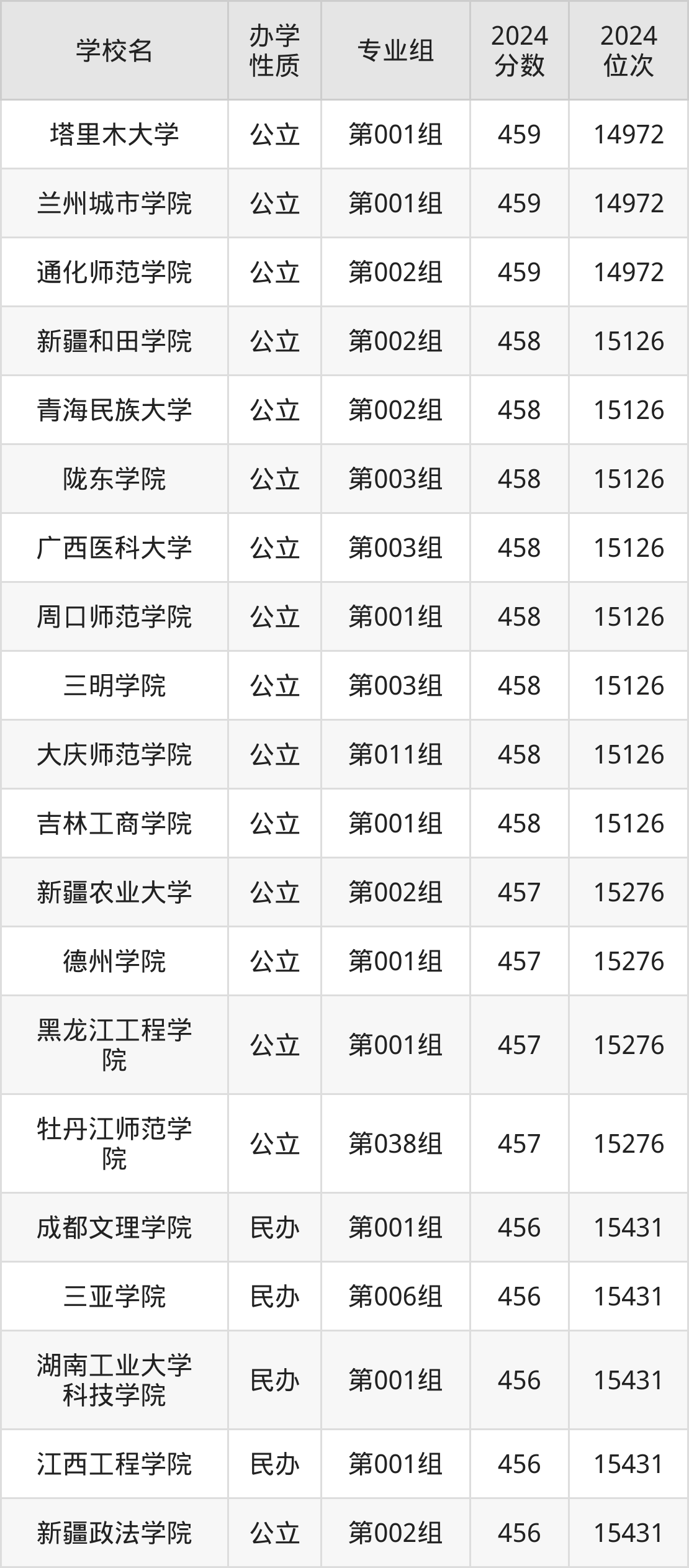 | 学校名 | 专业组 | 2024 分数 | 2024 位次 |