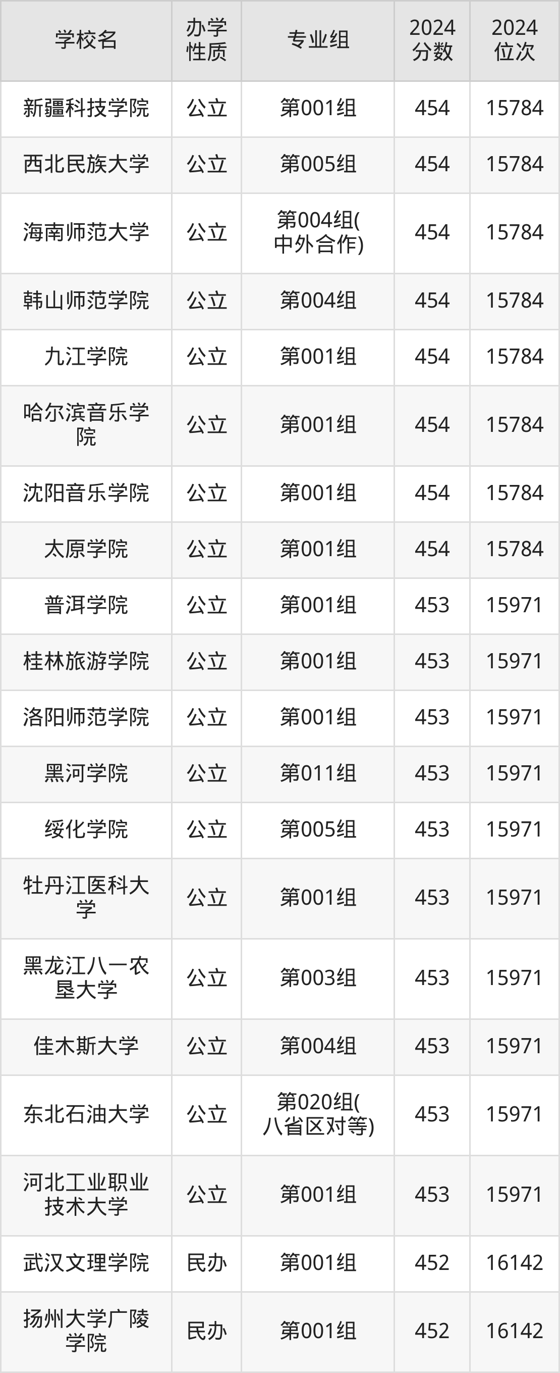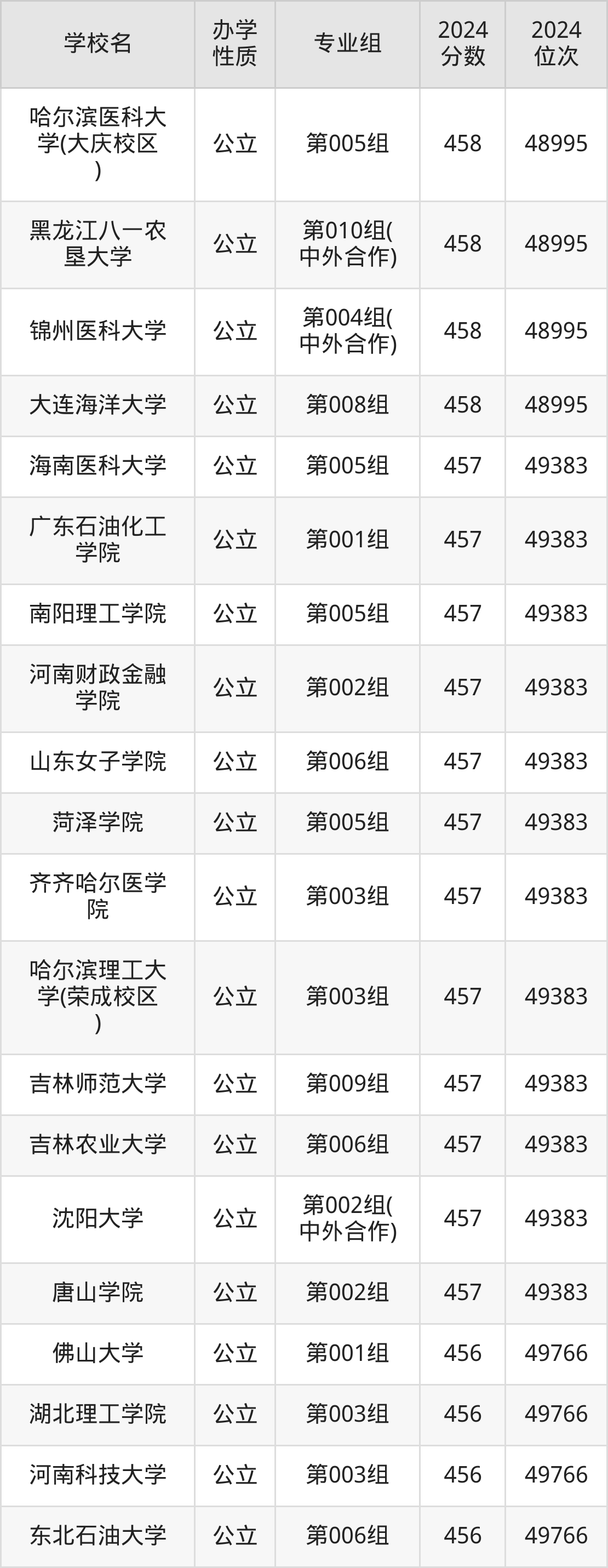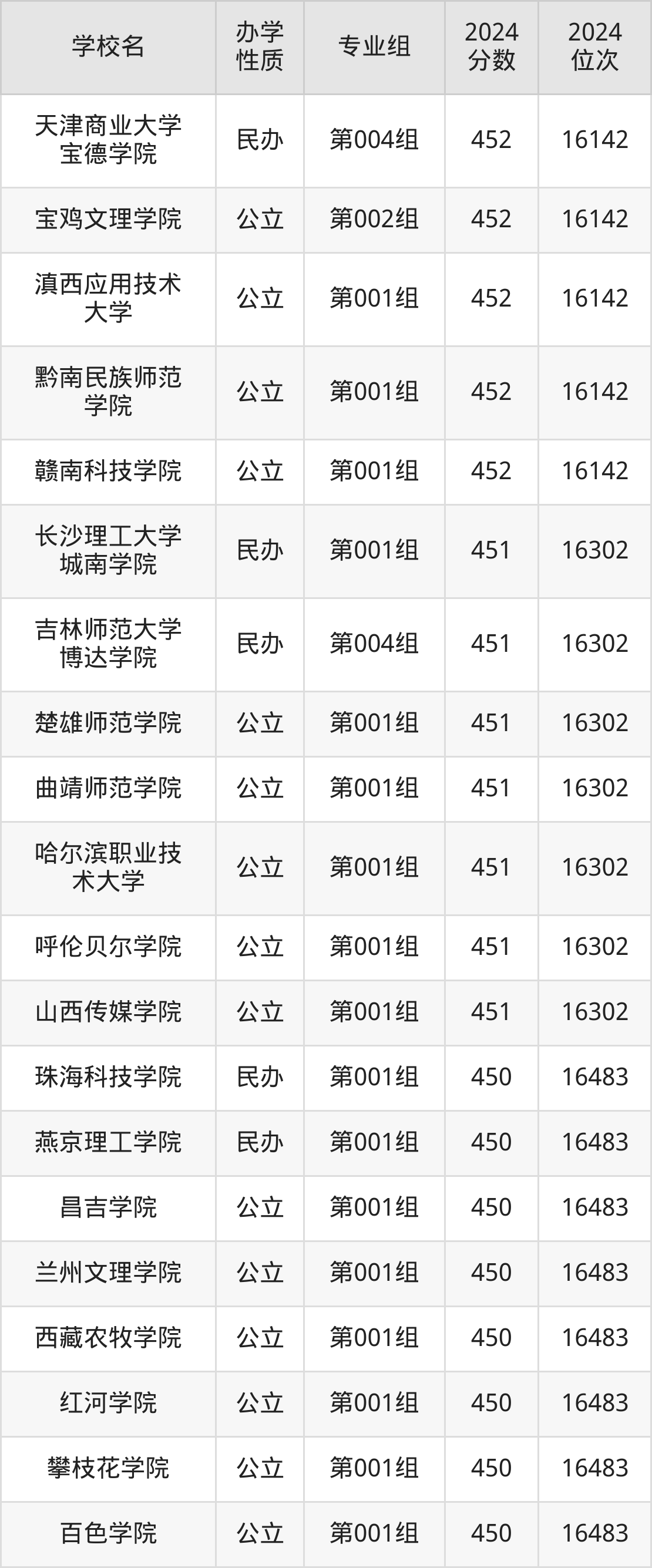 | 学校名 | 专业组 | 2024 分数 | 2024 位次 |