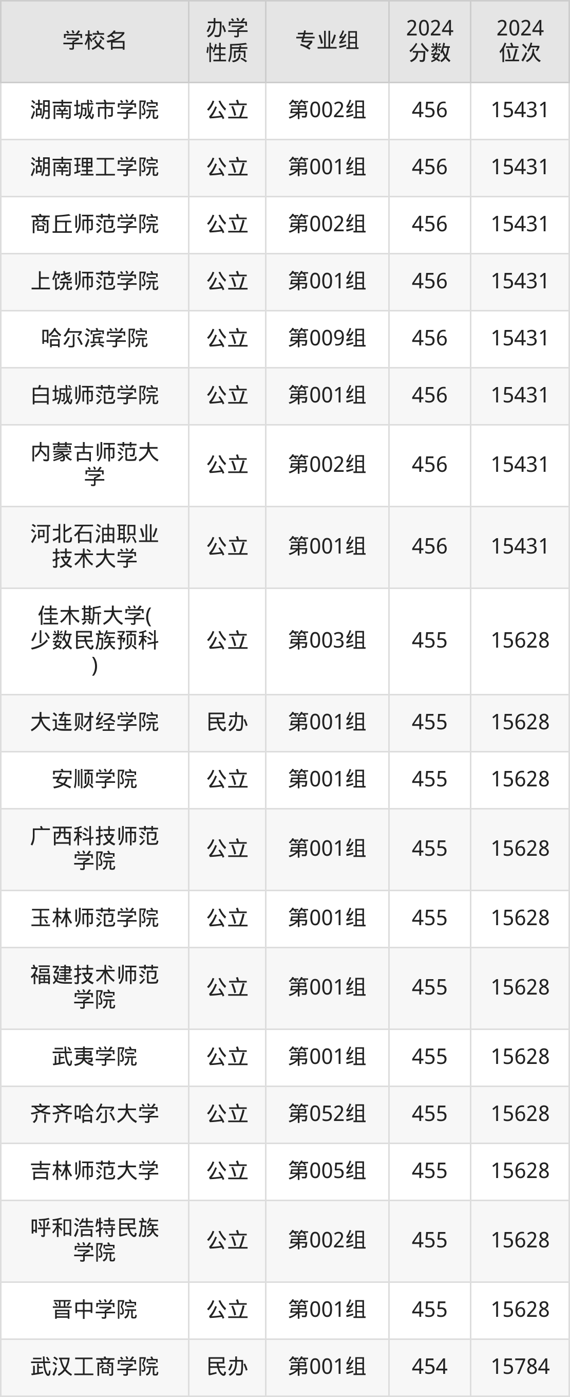| 佳木斯大学( 少数民族预科 ) | 第003组 | 455 | 15628 |