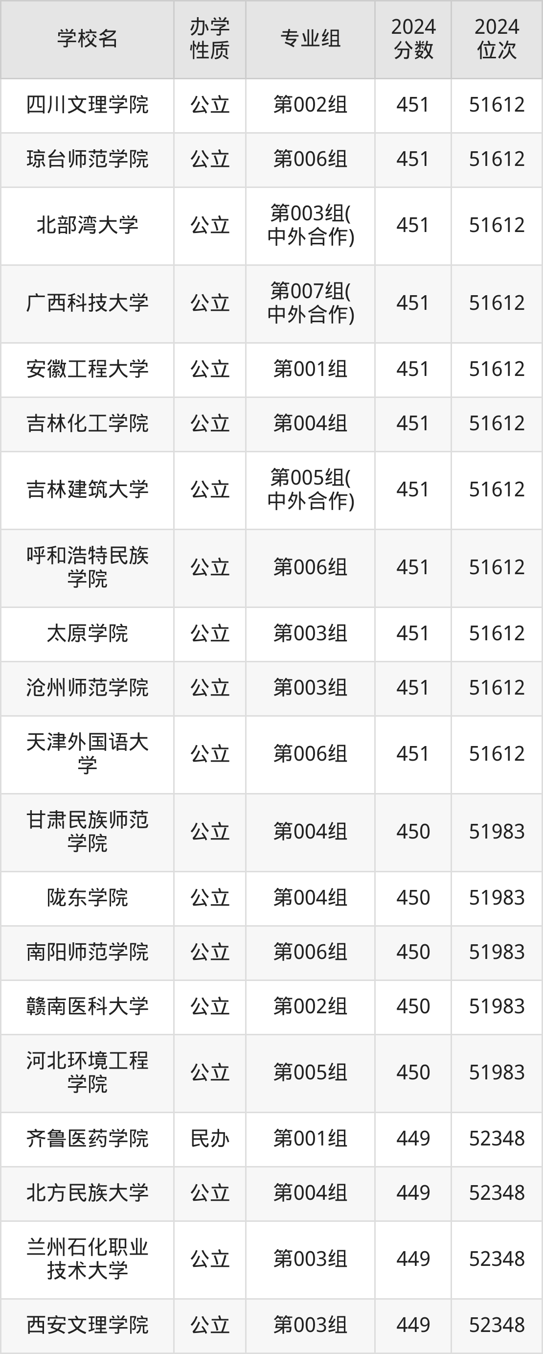| 广西科技大学 | 第007组( 中外合作) | 451 | 51612 |