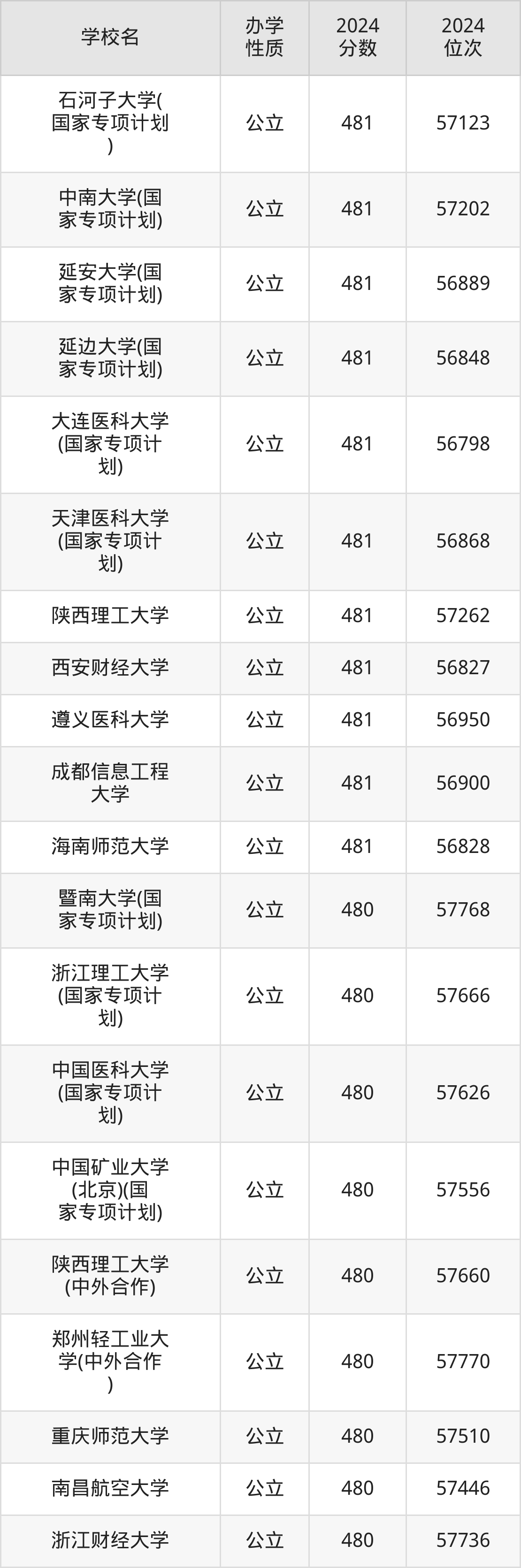 为了方便2025届考生了解自己能上哪些大学,本文也整理出了陕西480分左右能上的所有大学名单,供2025年考生参考。