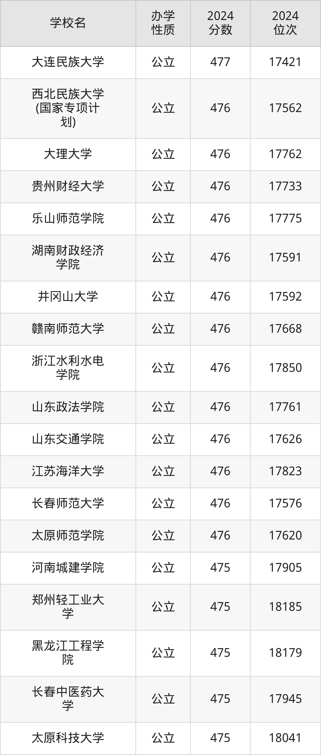 | 西北民族大学 (国家专项计 划) | 476 | 17562 |