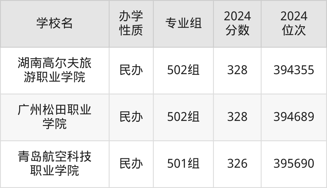 | 湖南高尔夫旅 游职业学院 | 502组 | 328 | 394355 |