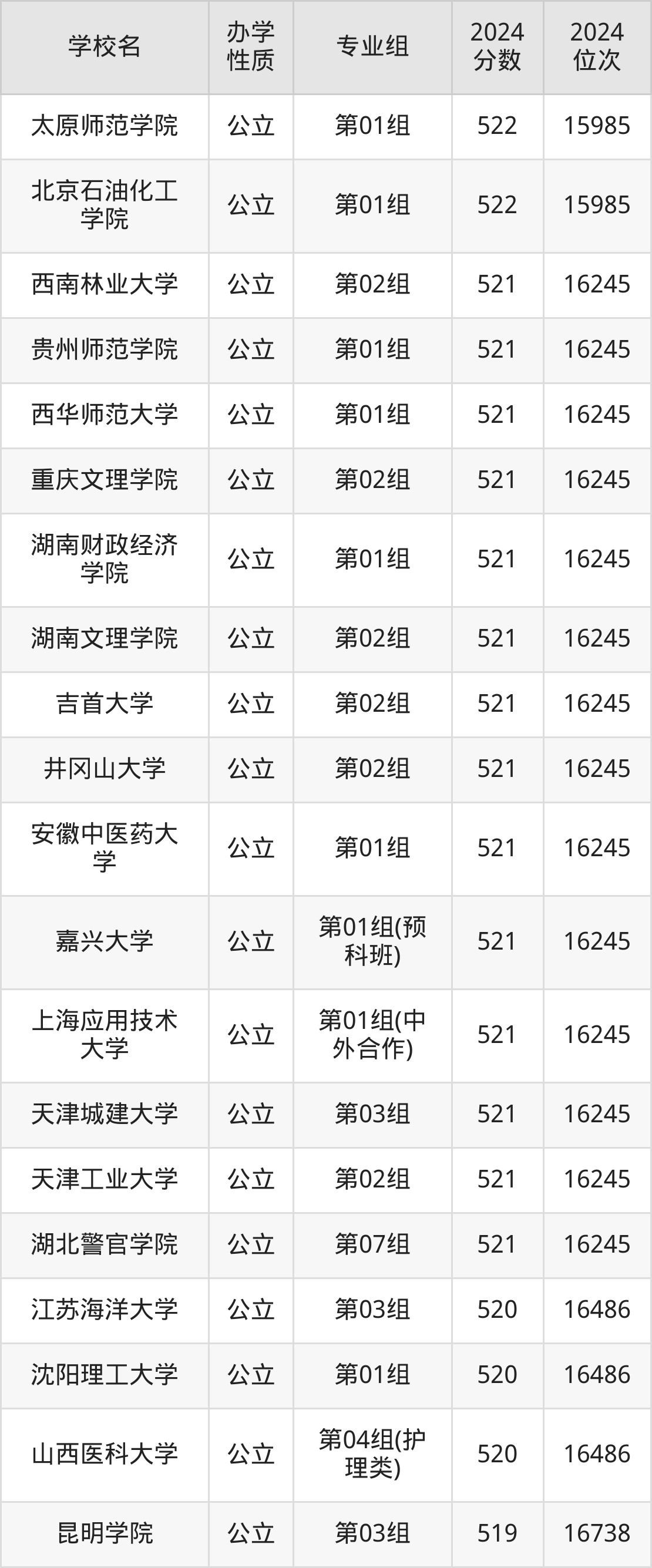 湖北523分左右的考生可以上广西科技大学、山东建筑大学、南昌医学院等院校,刚好在523分的院校有甘肃中医药大学、陕西理工大学、云南农业大学等。