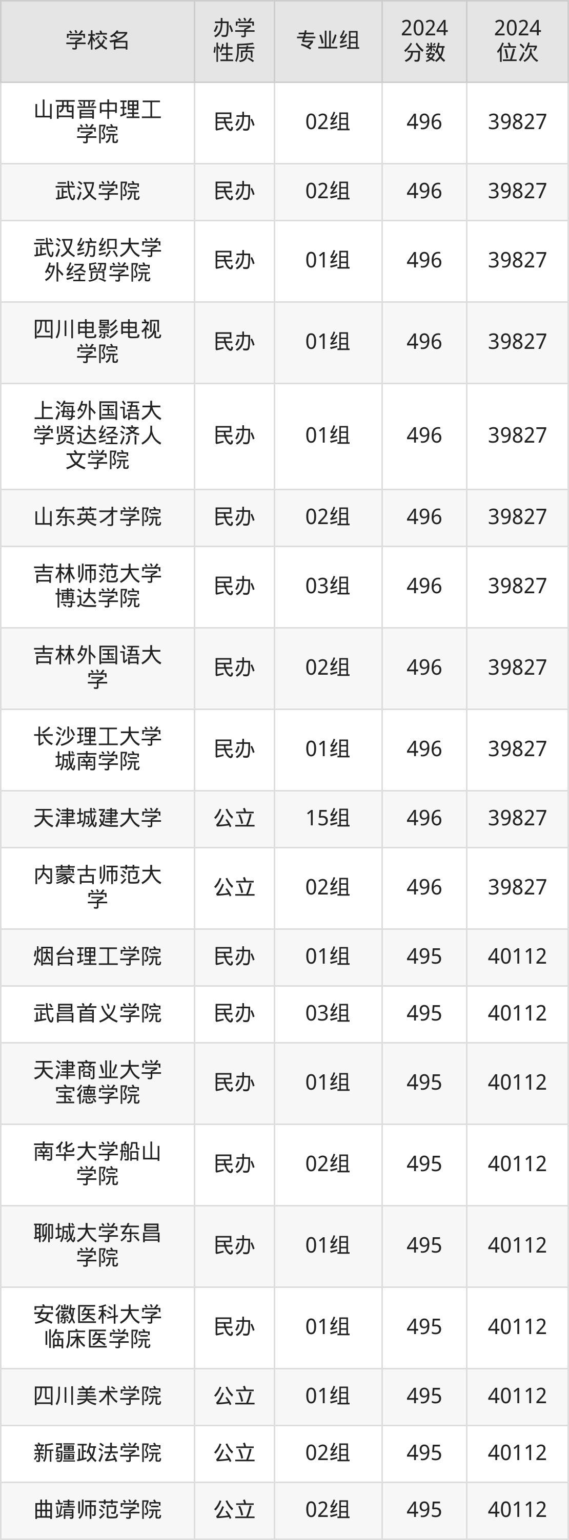 2024年天津492分考生能上浙江财经大学东方学院、无锡太湖学院、四川大学锦江学院、三峡大学科技学院、青岛农业大学海都学院等115所二本院校,具体录取分数线及位次为: