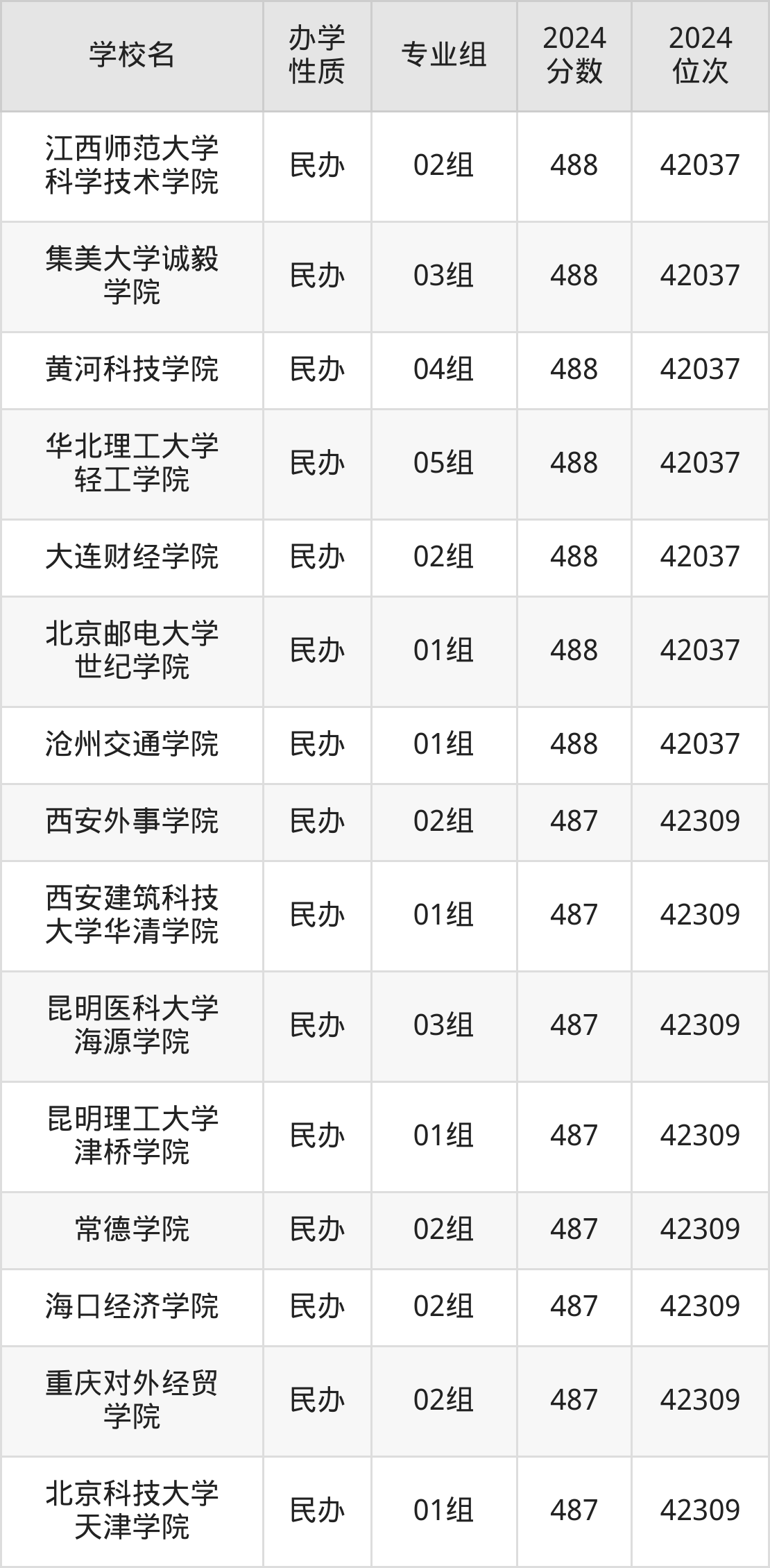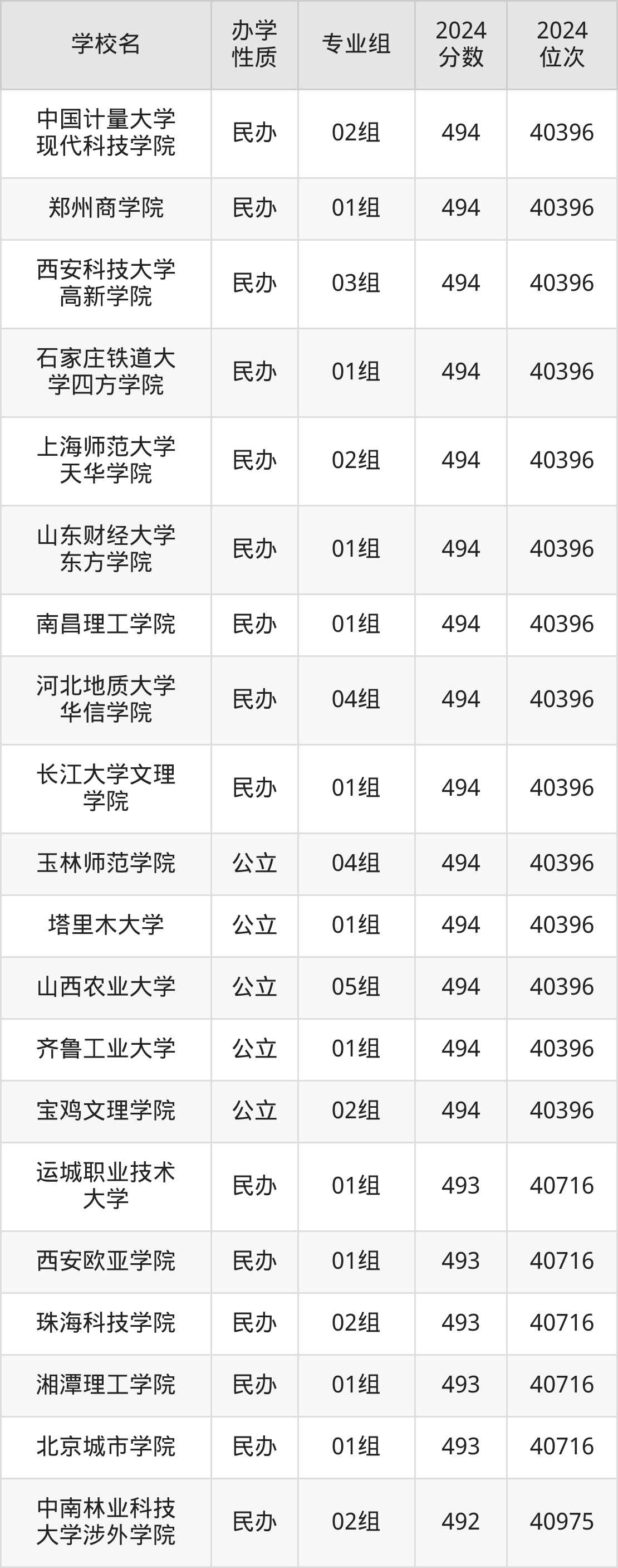 | 学校名 | 专业组 | 2024 分数 | 2024 位次 |