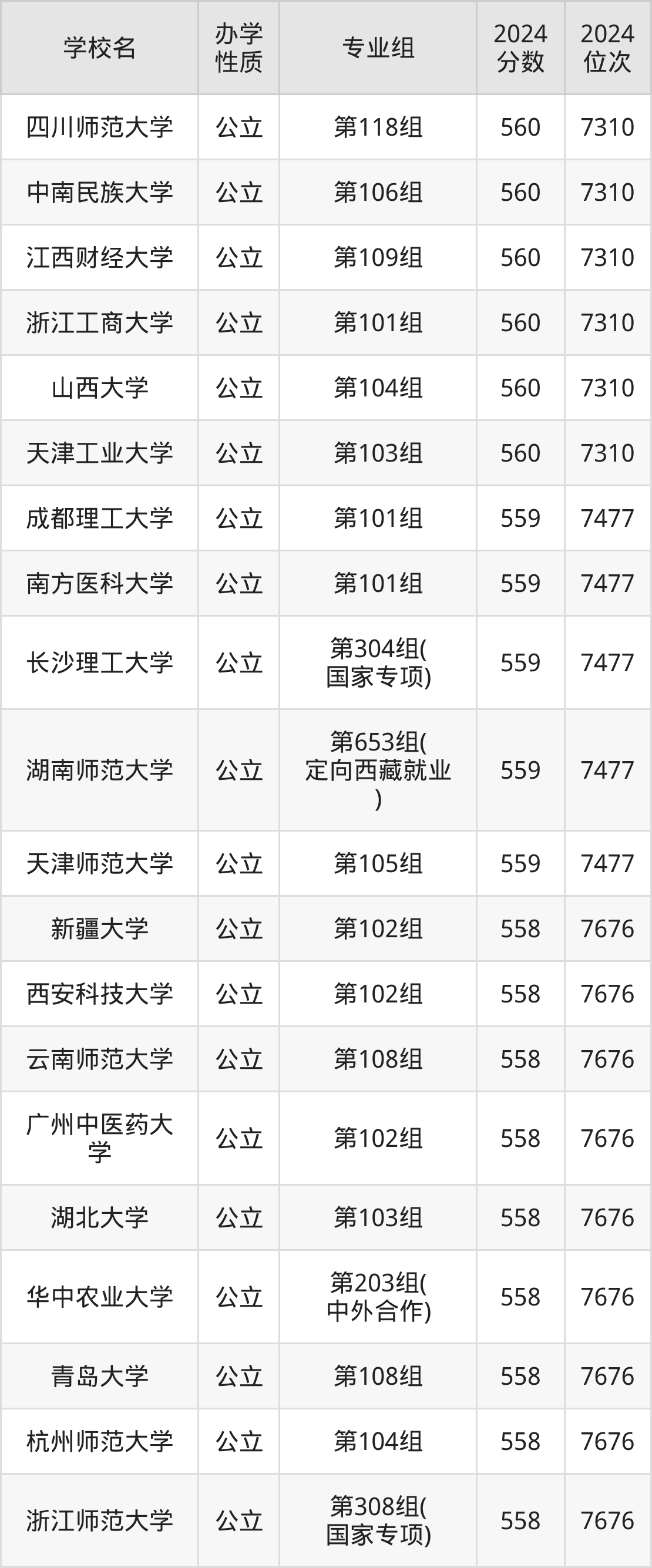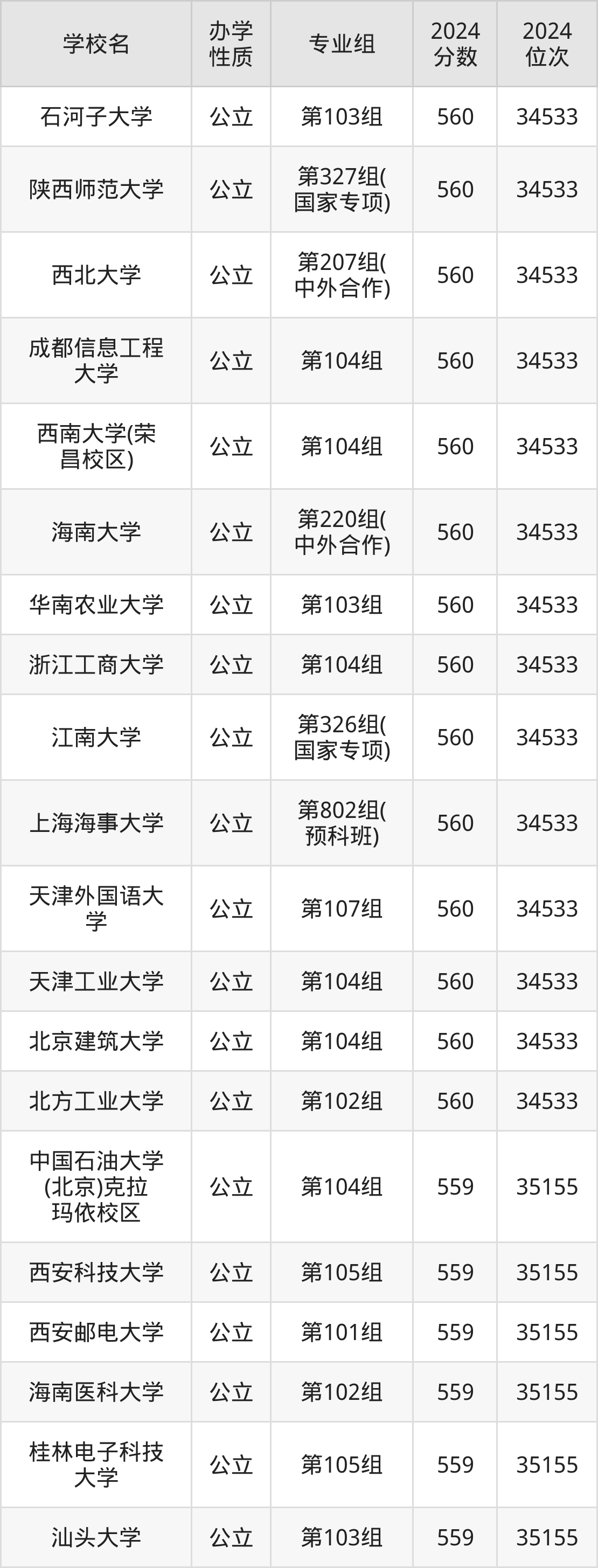 | 陕西师范大学 | 第327组( 国家专项) | 560 | 34533 |