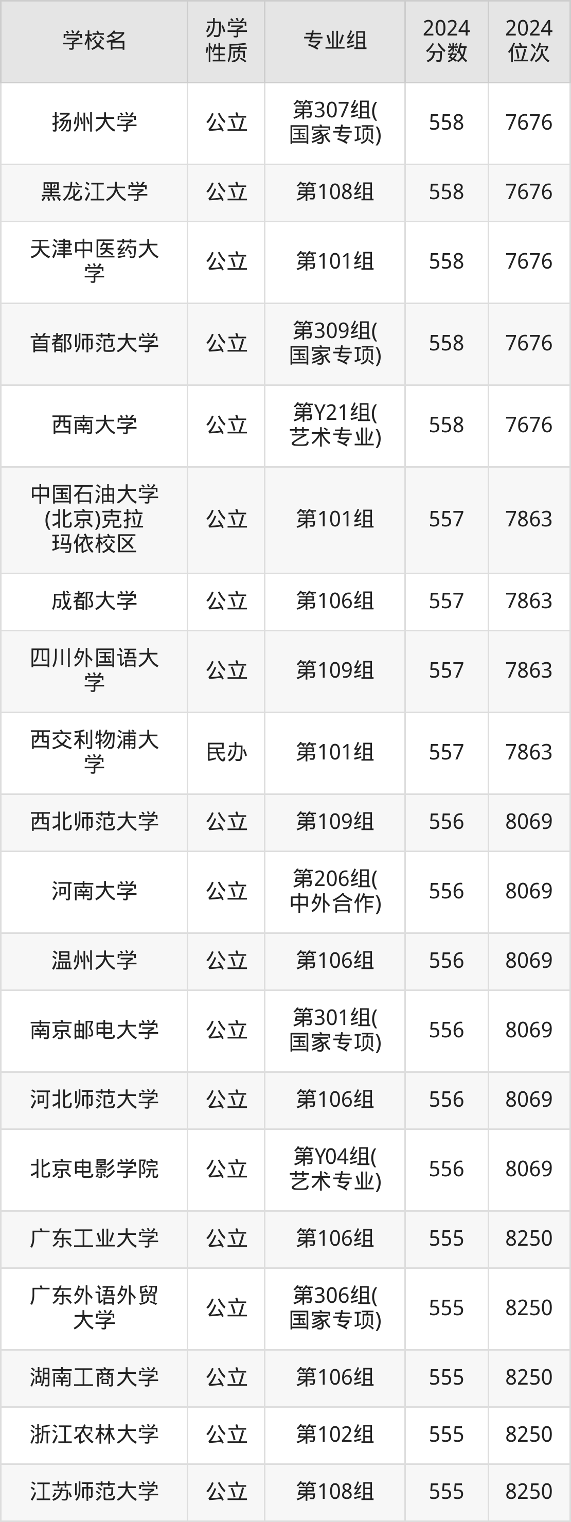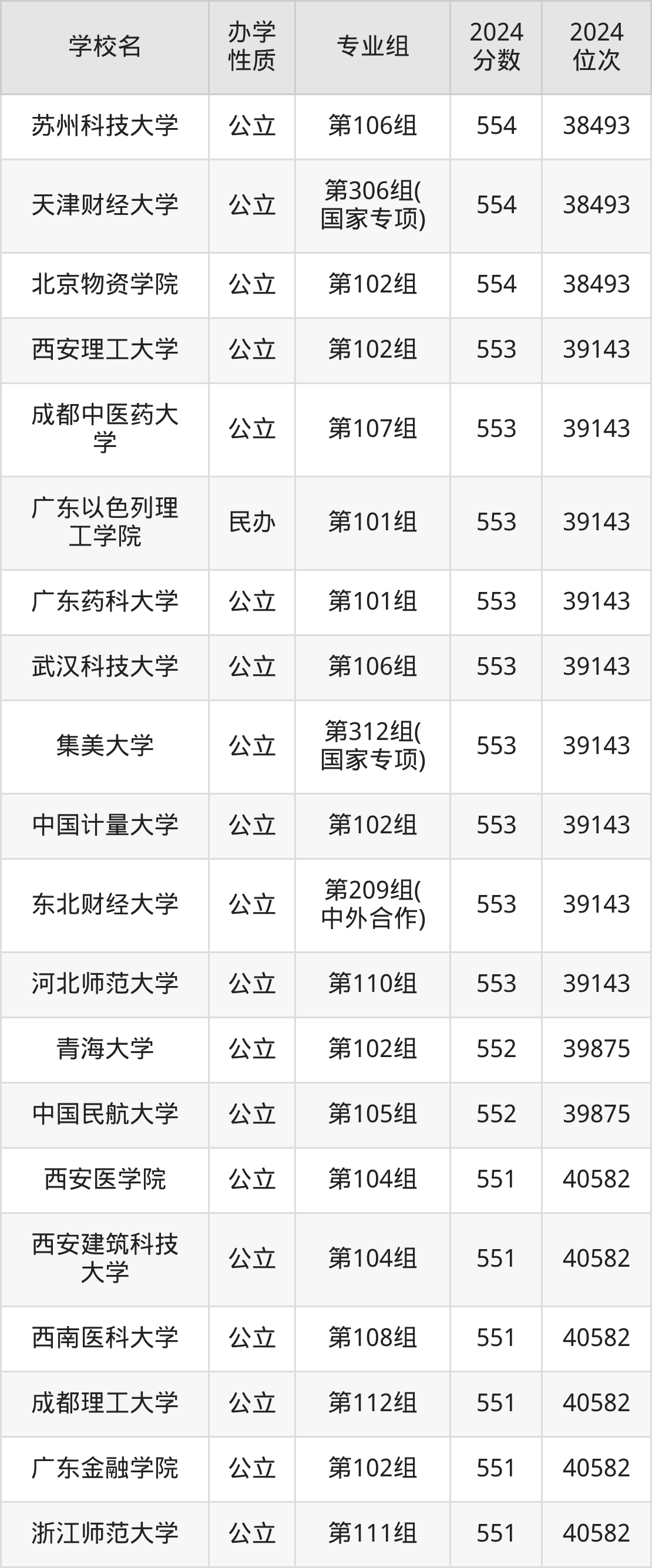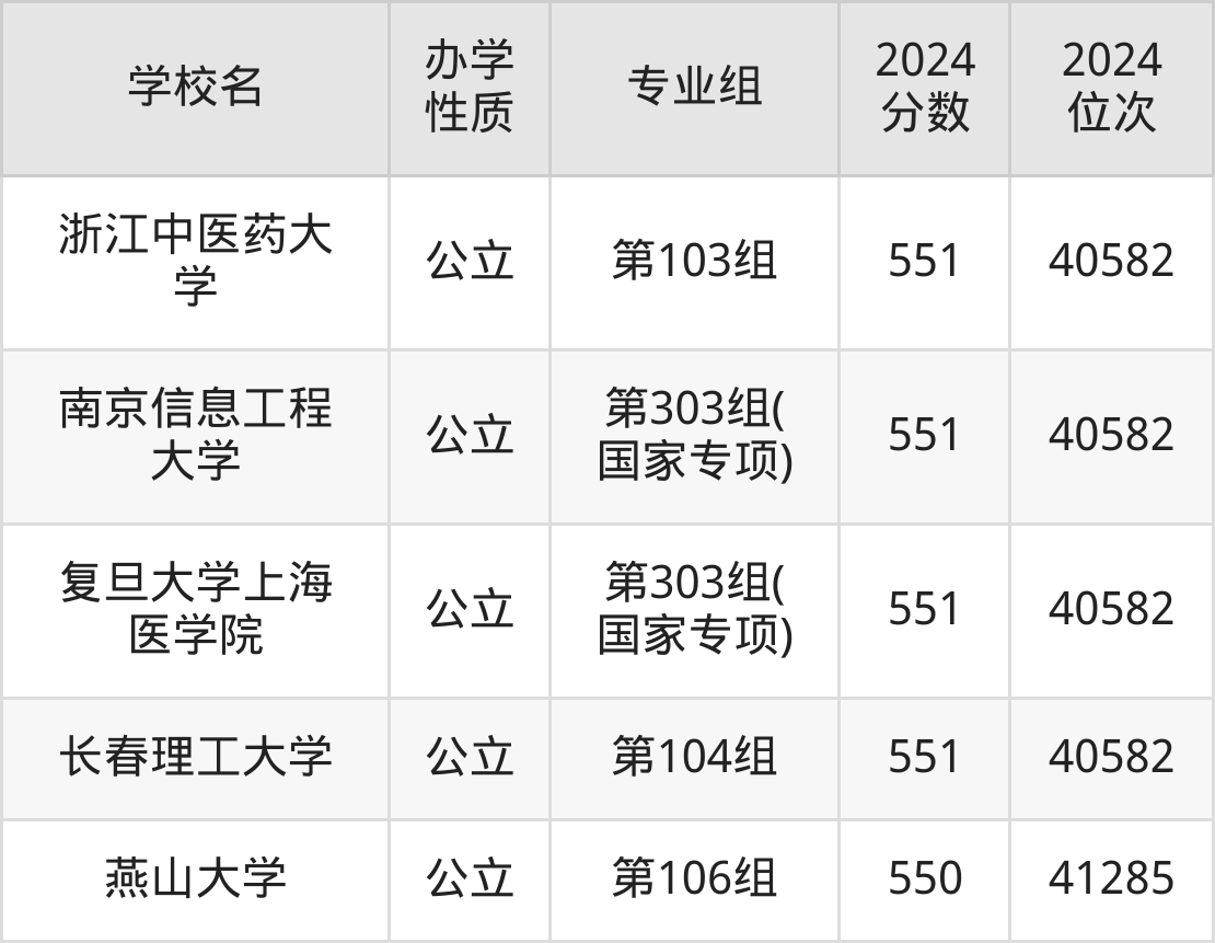 | 学校名 | 专业组 | 2024 分数 | 2024 位次 |