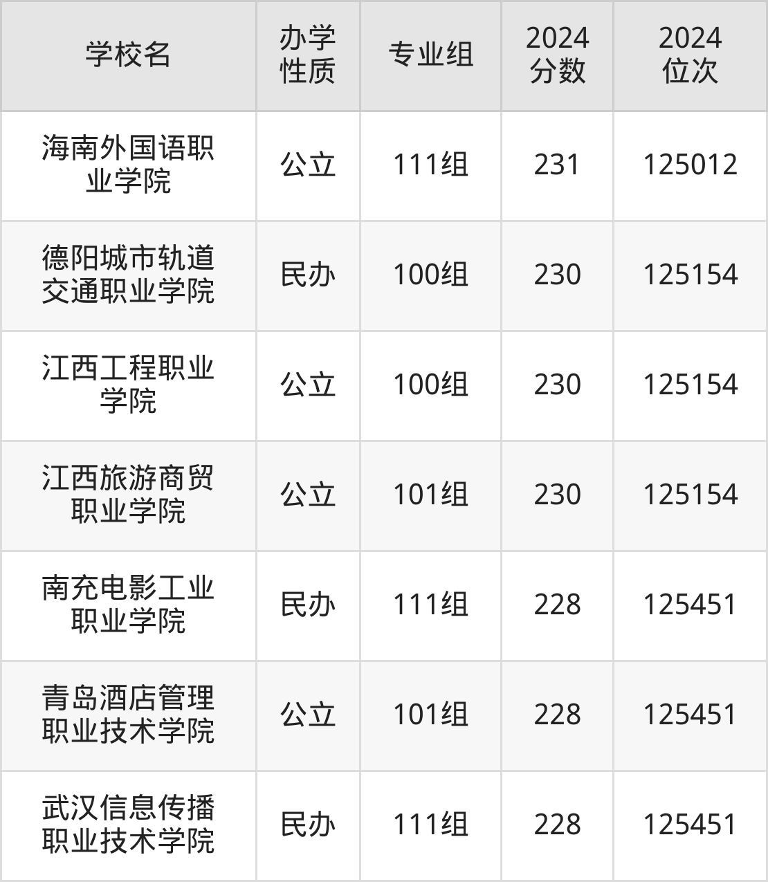 | 江西工商职业 技术学院 | 302组(中 外合作) | 232 | 245420 |