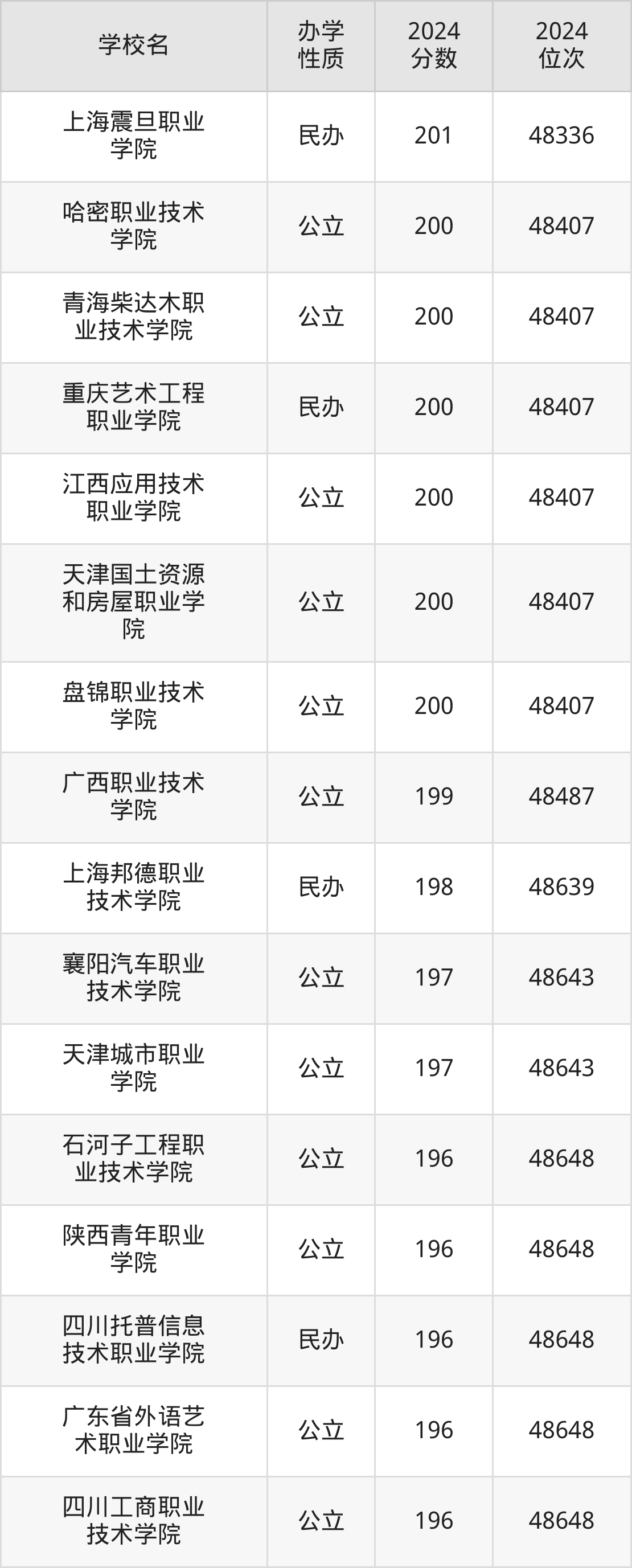 | 石河子工程职 业技术学院 | 196 | 48648 |