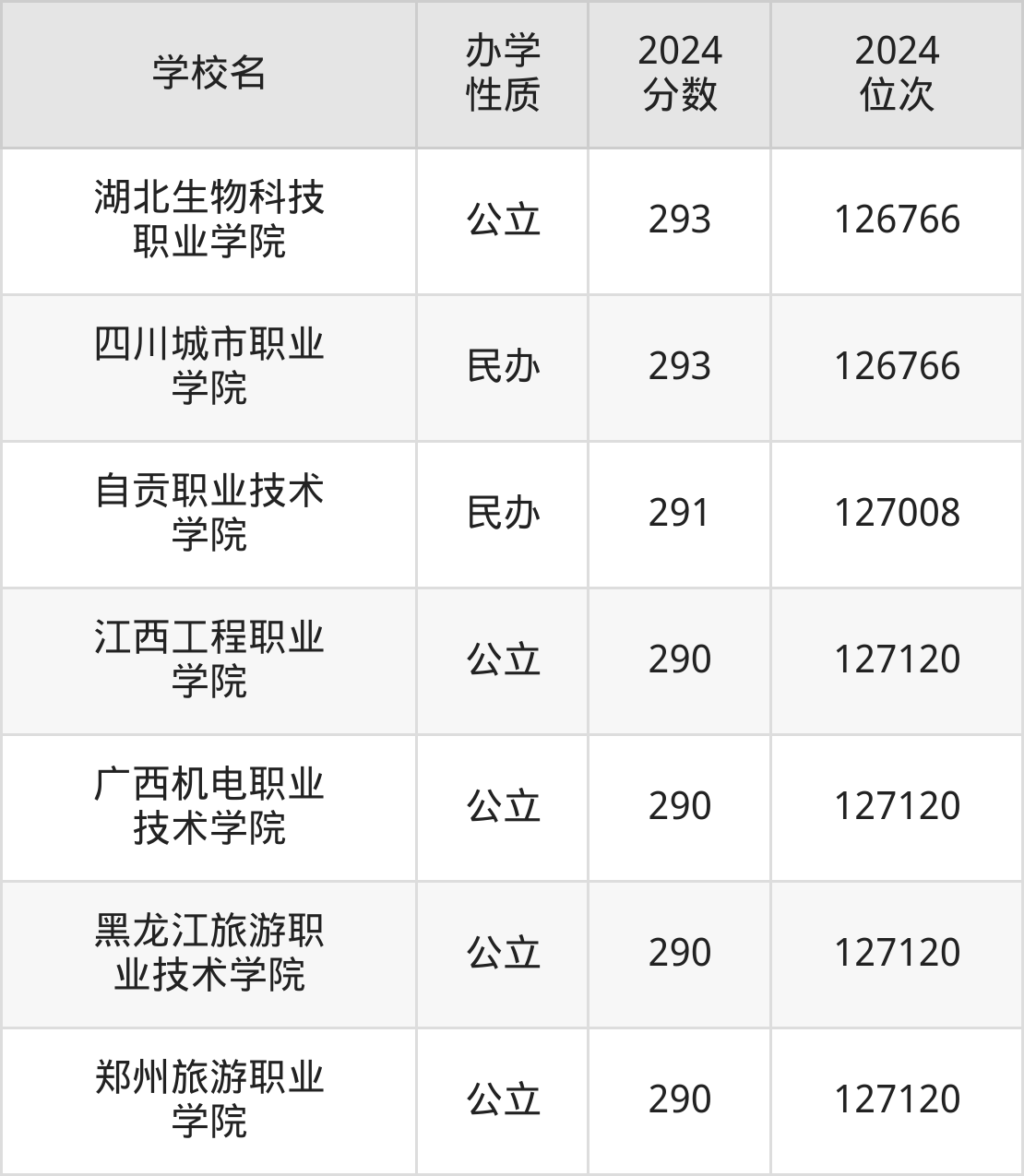 | 郑州旅游职业 学院 | 290 | 127120 |