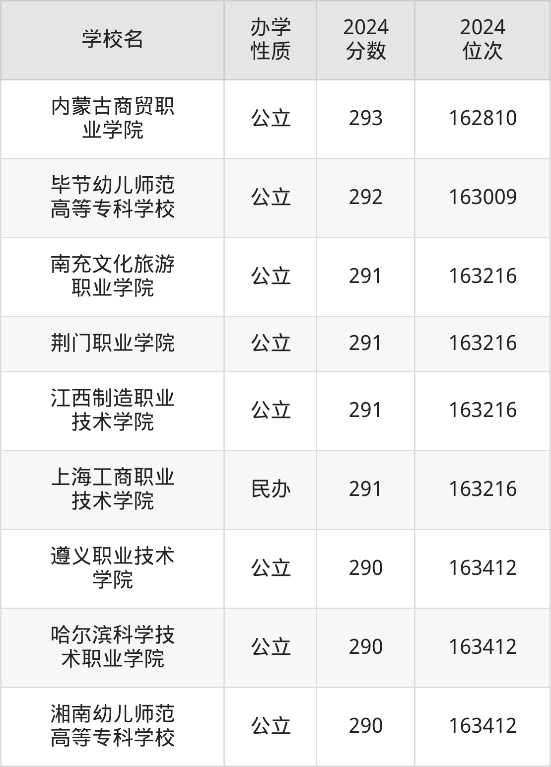 | 内蒙古商贸职 业学院 | 293 | 162810 |