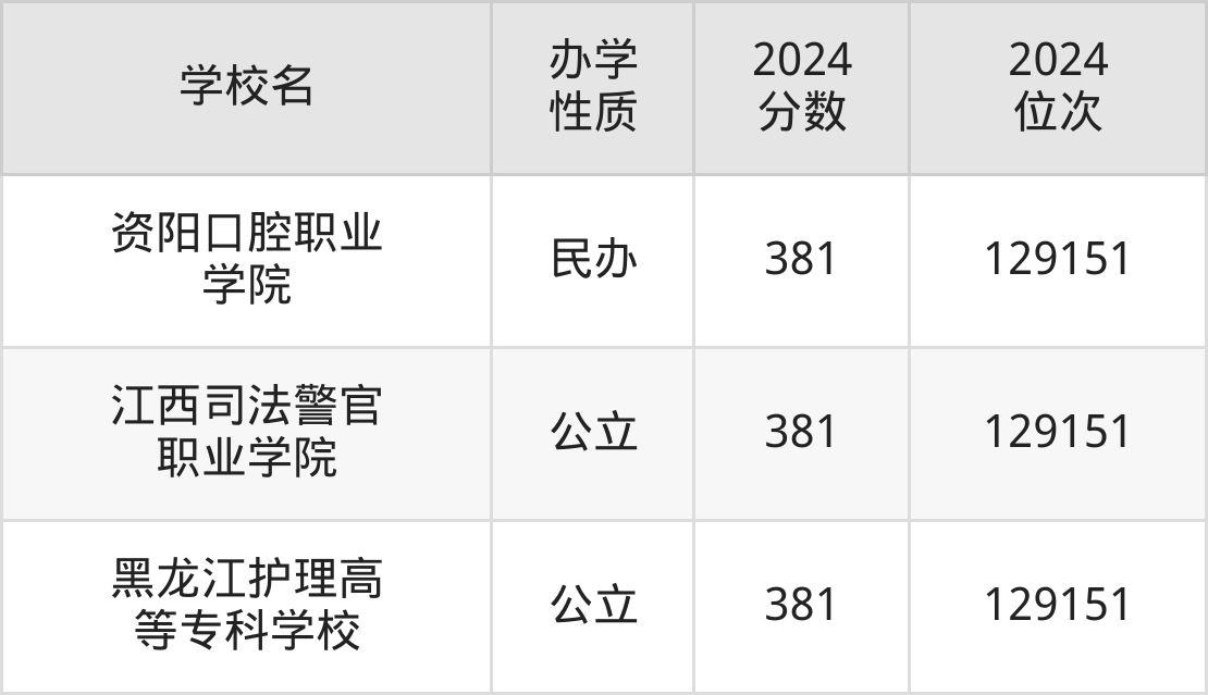 | 资阳口腔职业 学院 | 381 | 129151 |