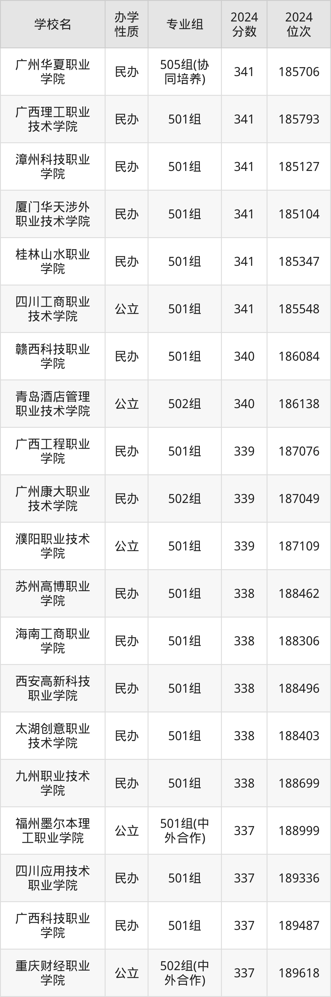 | 厦门华天涉外 职业技术学院 | 501组 | 341 | 185104 |