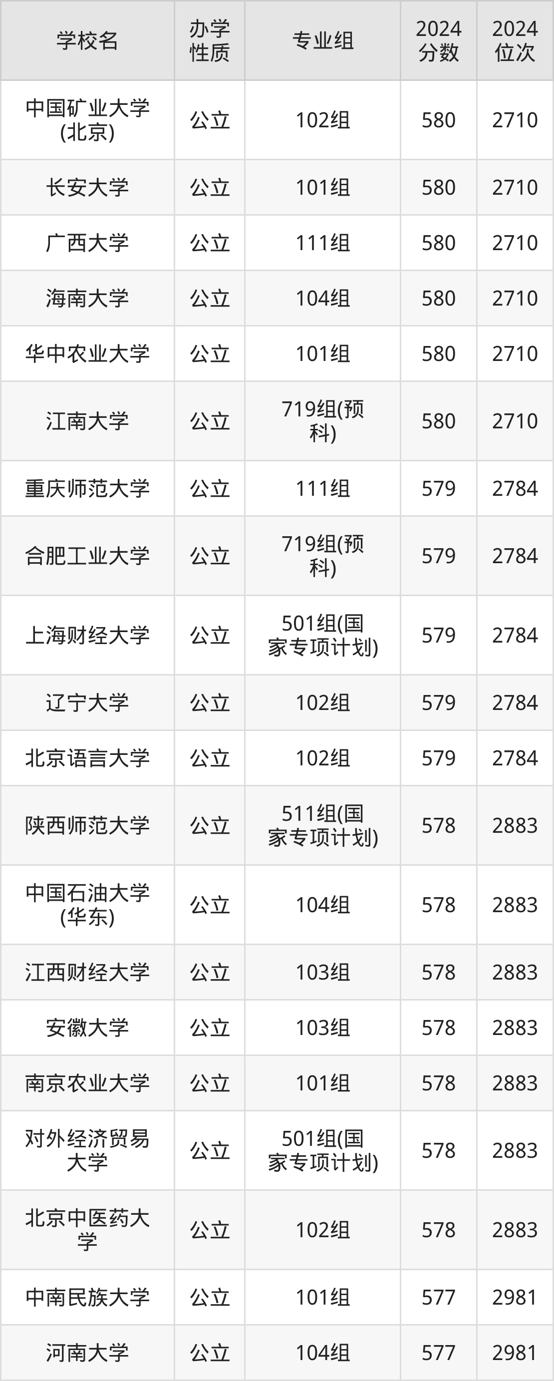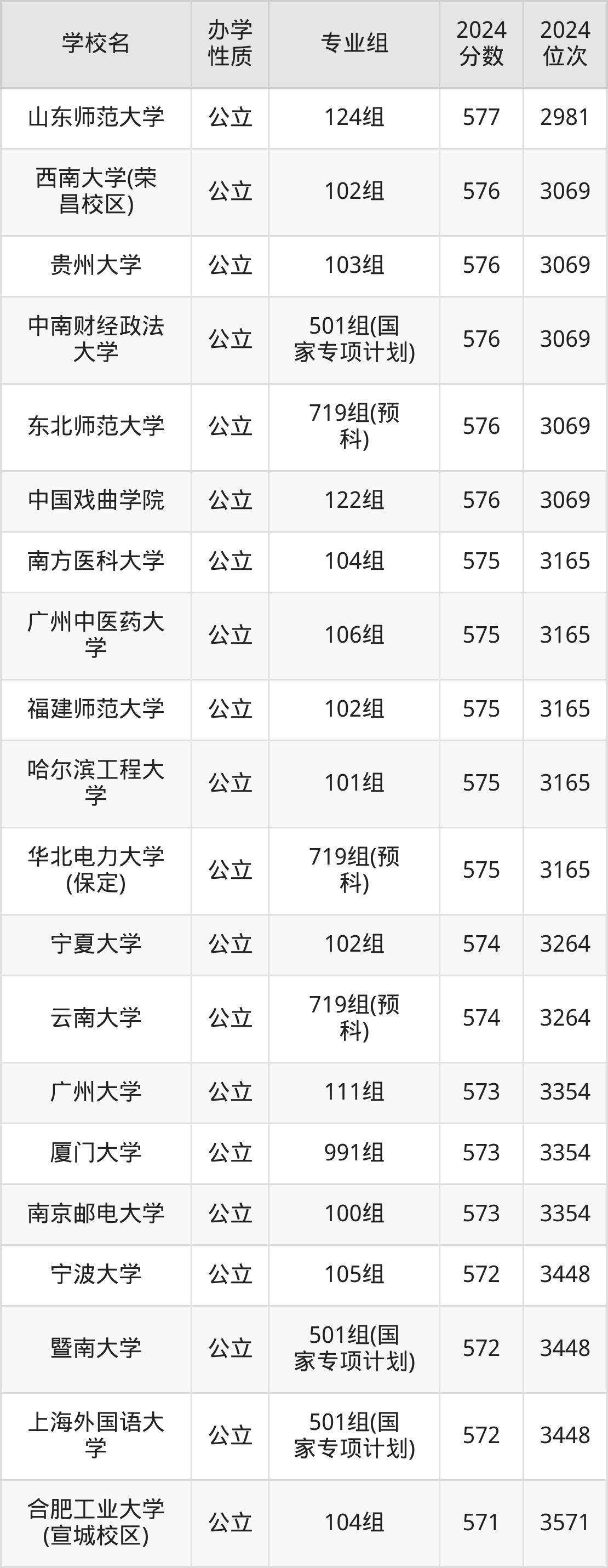 | 广西大学 | 512组(地 方专项计划) | 575 | 3165 |