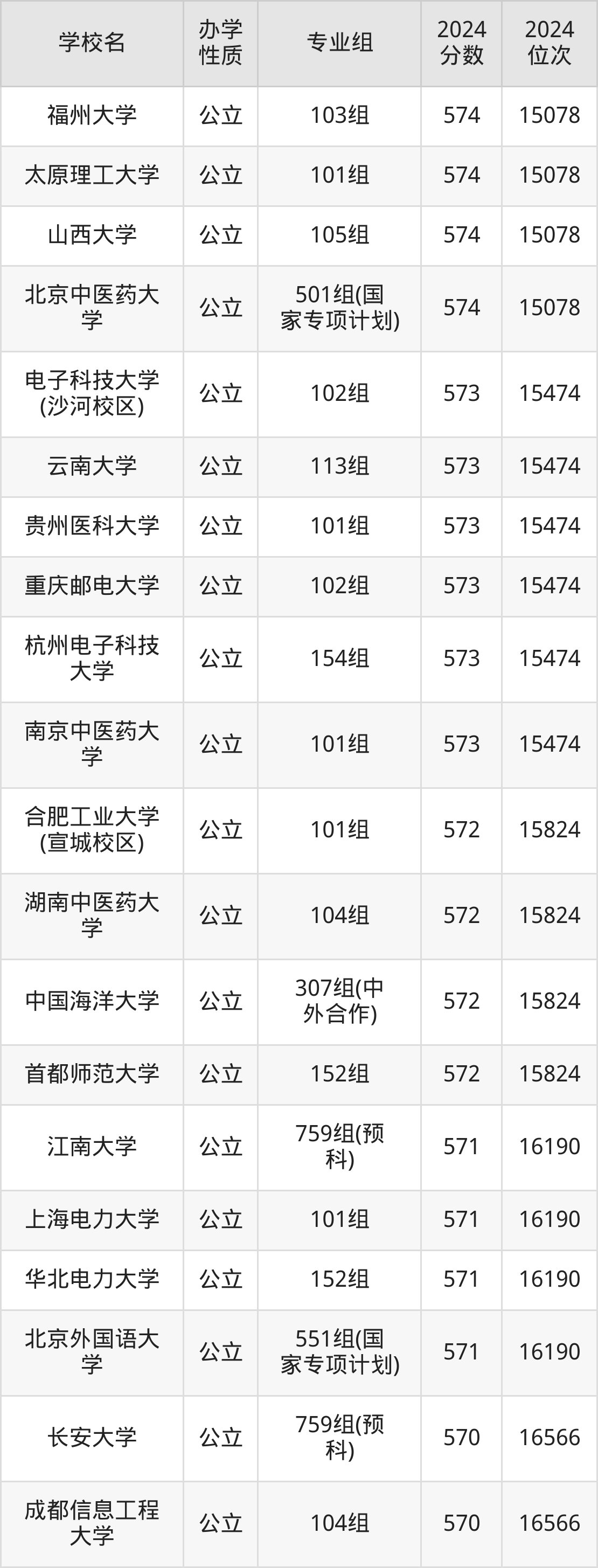 | 北京中医药大 学 | 501组(国 家专项计划) | 574 | 15078 |