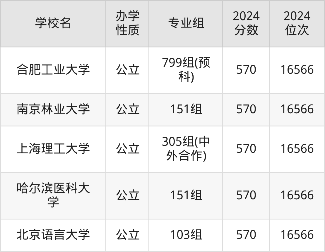| 合肥工业大学 | 799组(预 科) | 570 | 16566 |