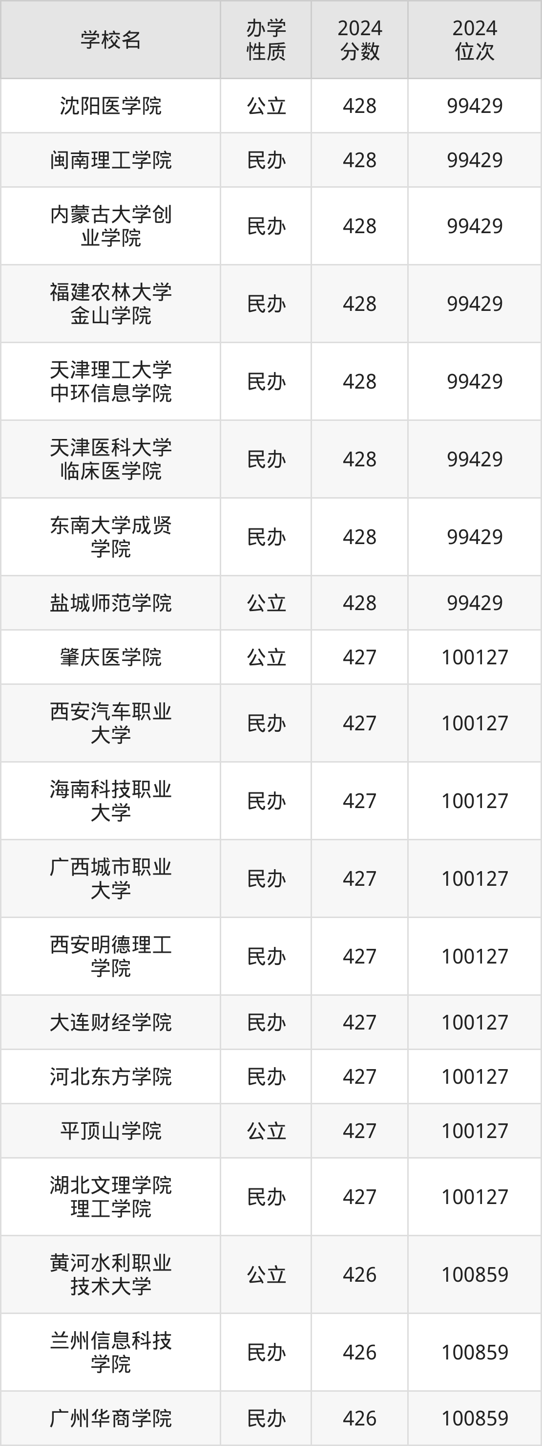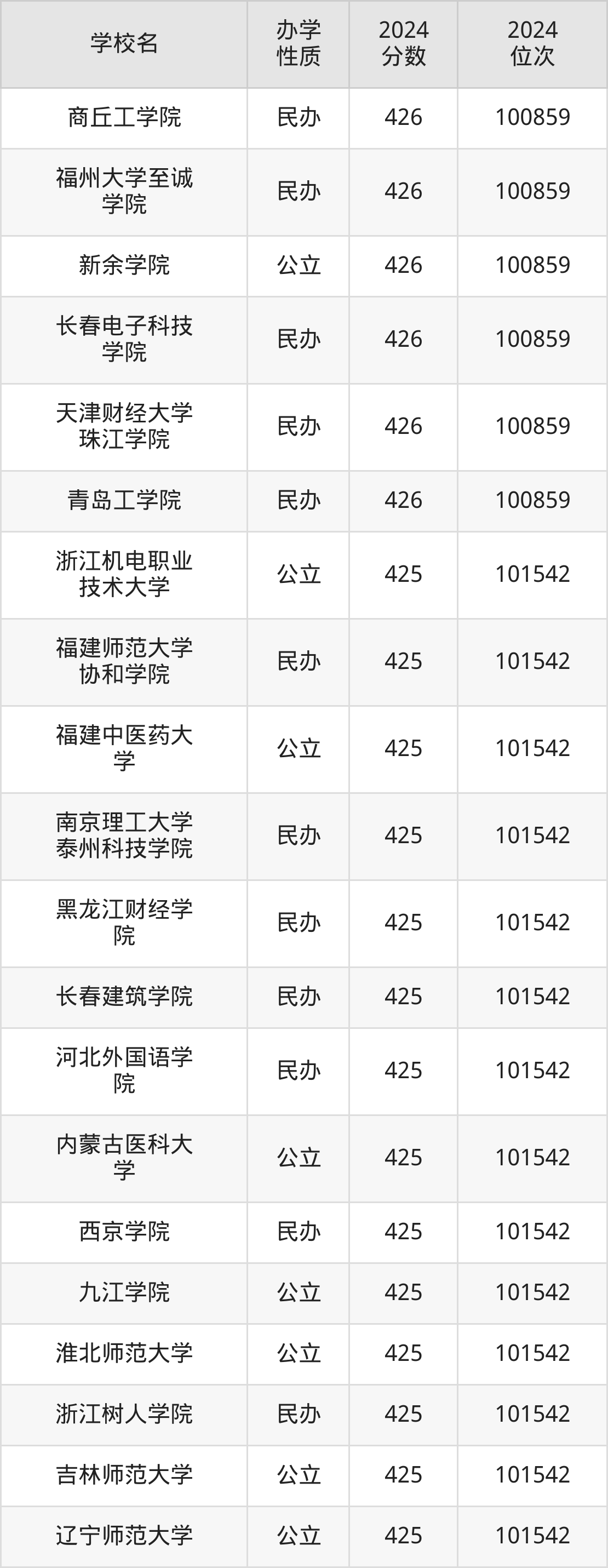 | 吉林师范大学 博达学院 | 424 | 102234 |