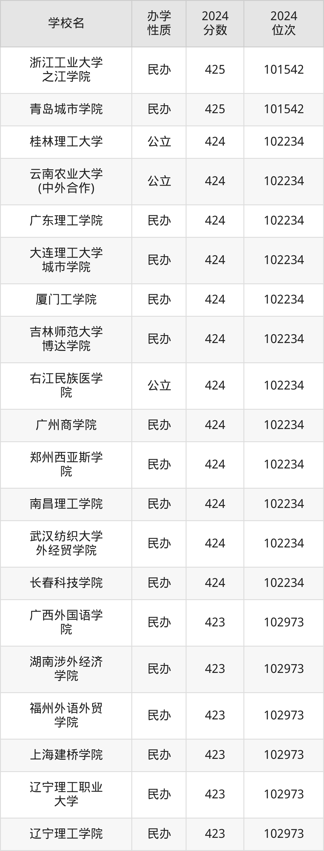 | 浙江工业大学 之江学院 | 425 | 101542 |