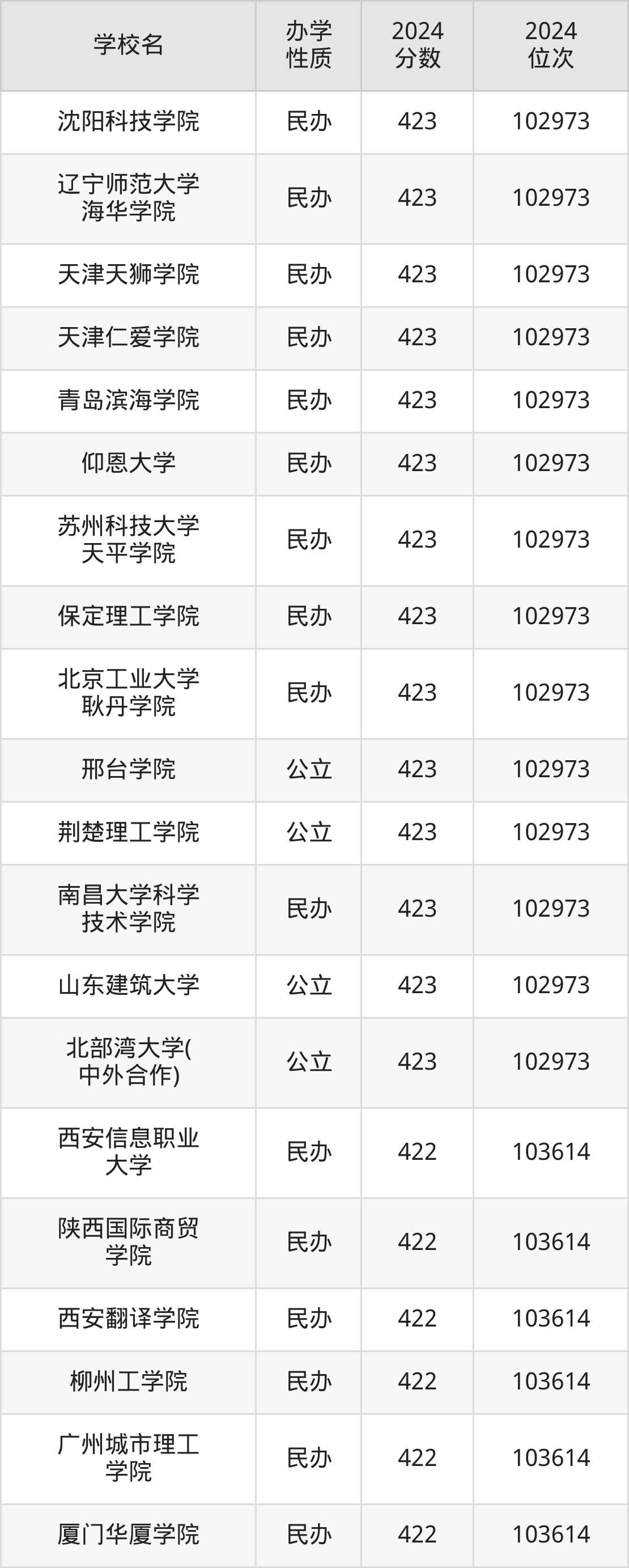 | 天津商业大学 宝德学院 | 422 | 103614 |