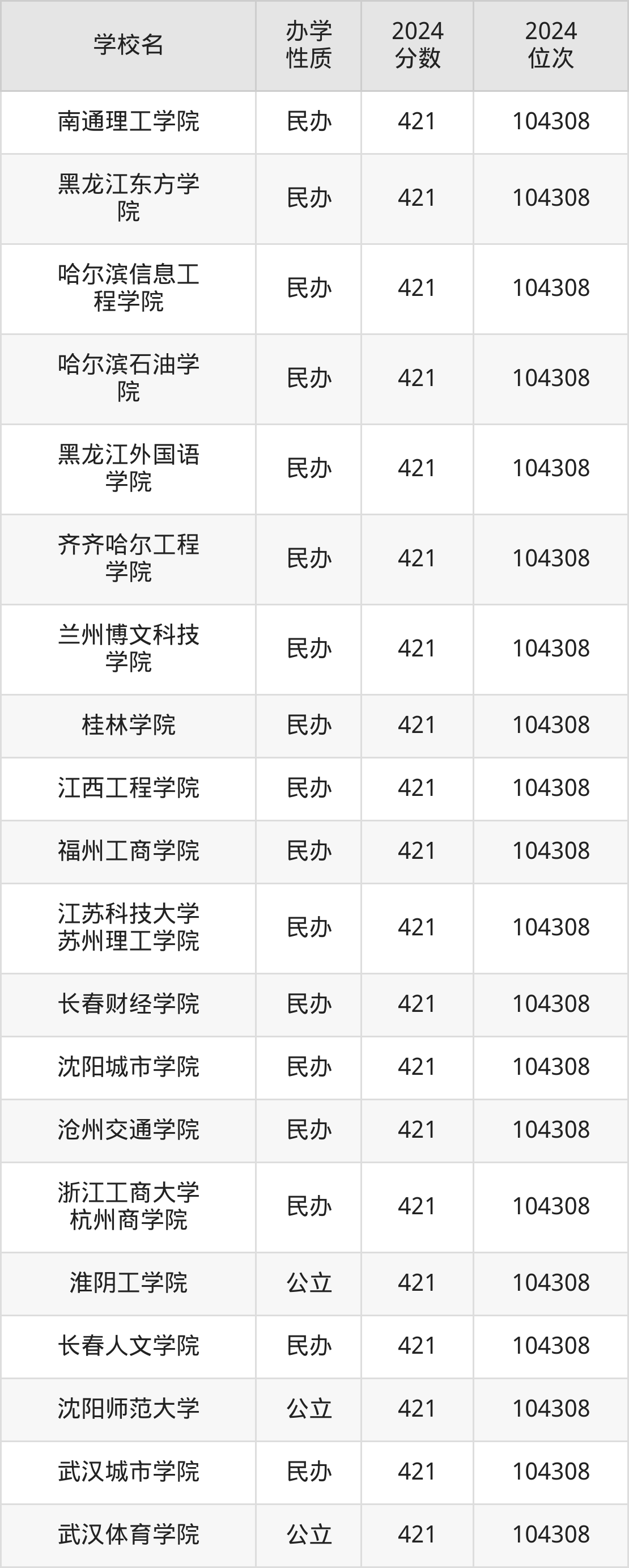 | 黑龙江外国语 学院 | 421 | 104308 |