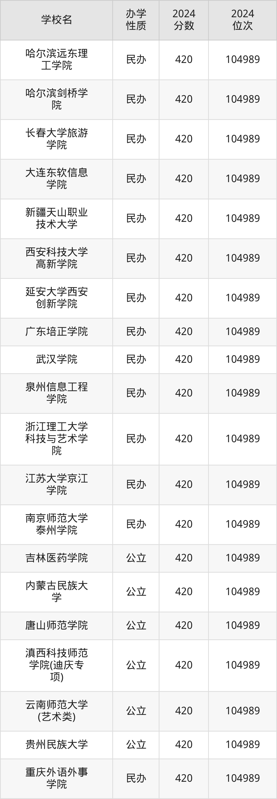 | 哈尔滨剑桥学 院 | 420 | 104989 |