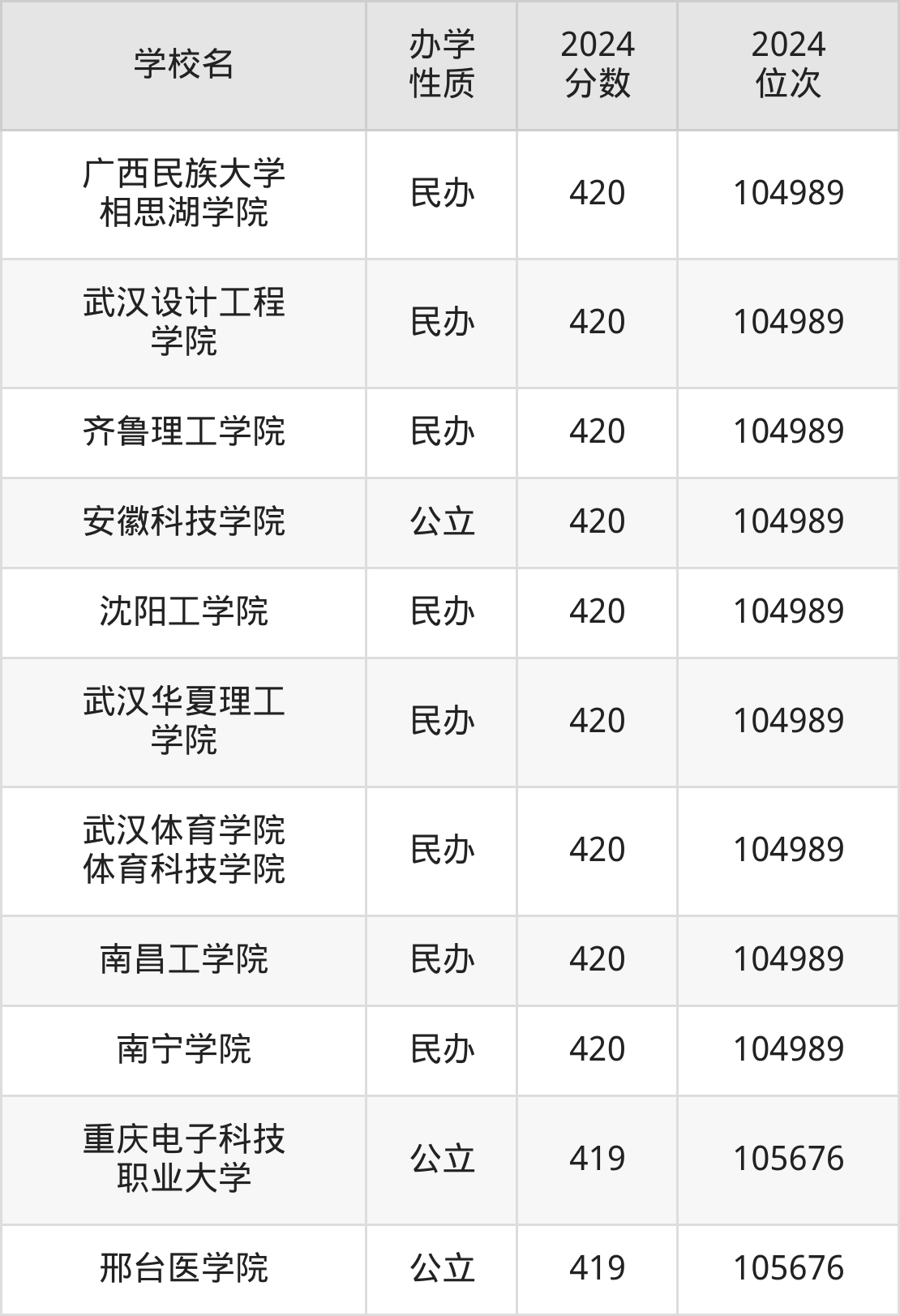 | 广西民族大学 相思湖学院 | 420 | 104989 |