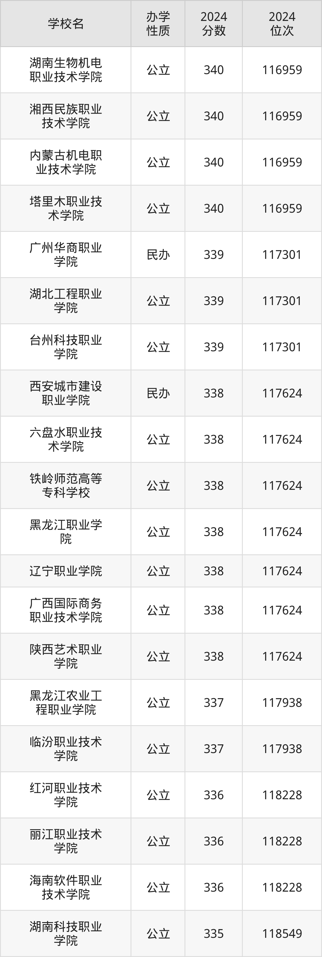 | 湖南生物机电 职业技术学院 | 340 | 116959 |
