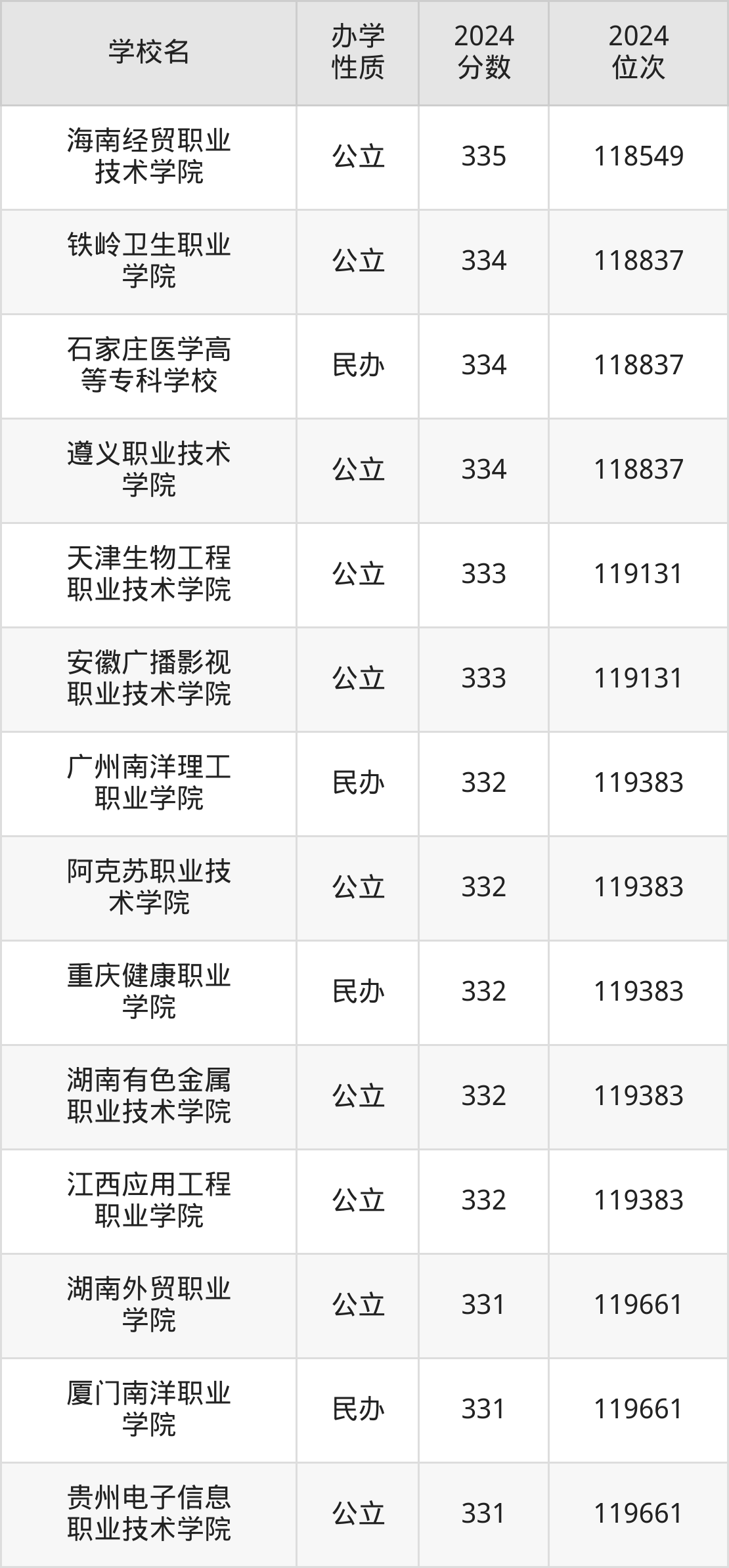 | 海南经贸职业 技术学院 | 335 | 118549 |
