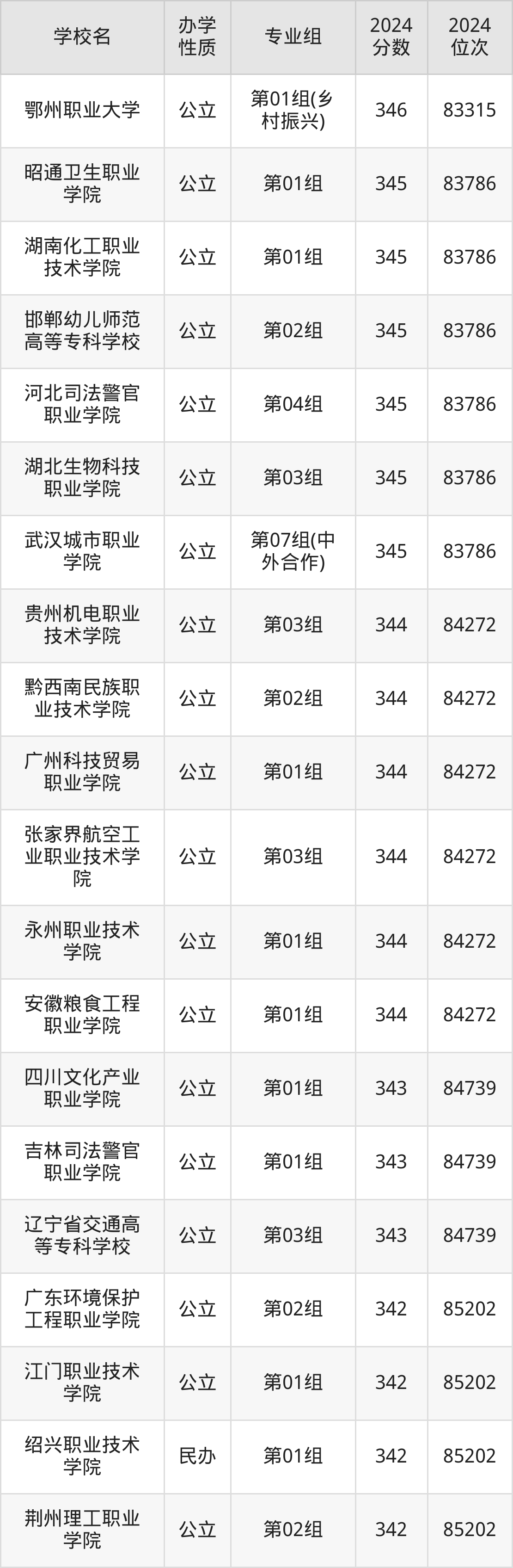 | 吉林司法警官 职业学院 | 第01组 | 343 | 84739 |
