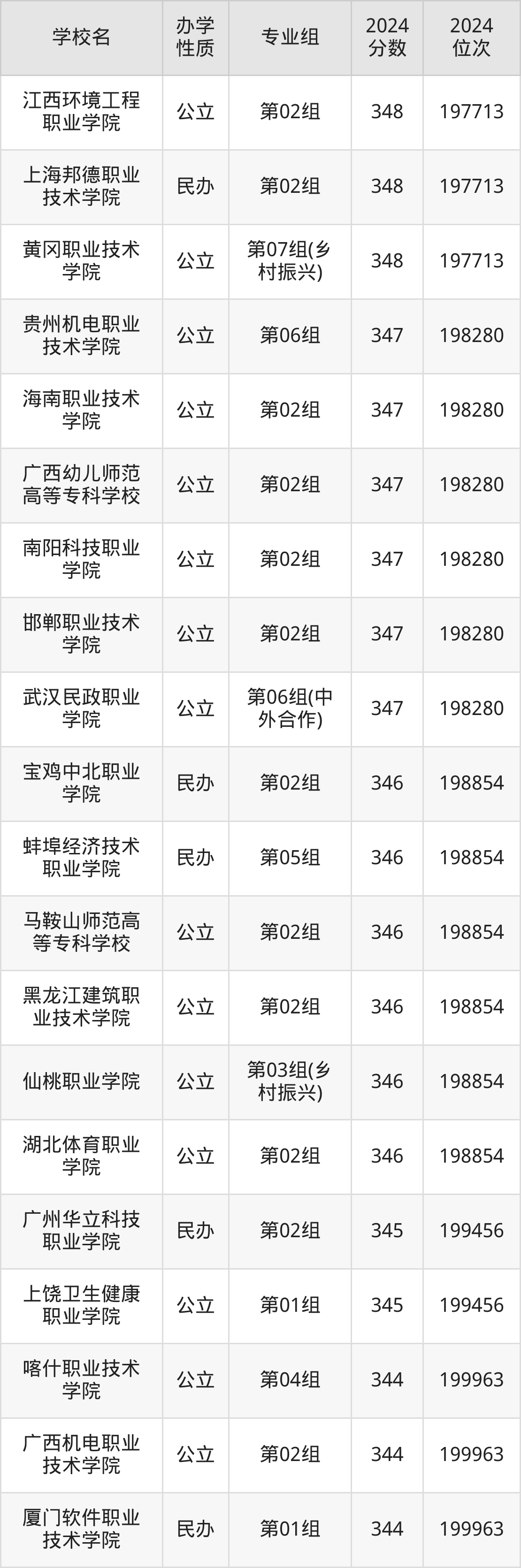 | 武汉软件工程 职业学院 | 第06组(中 外合作) | 349 | 81920 |