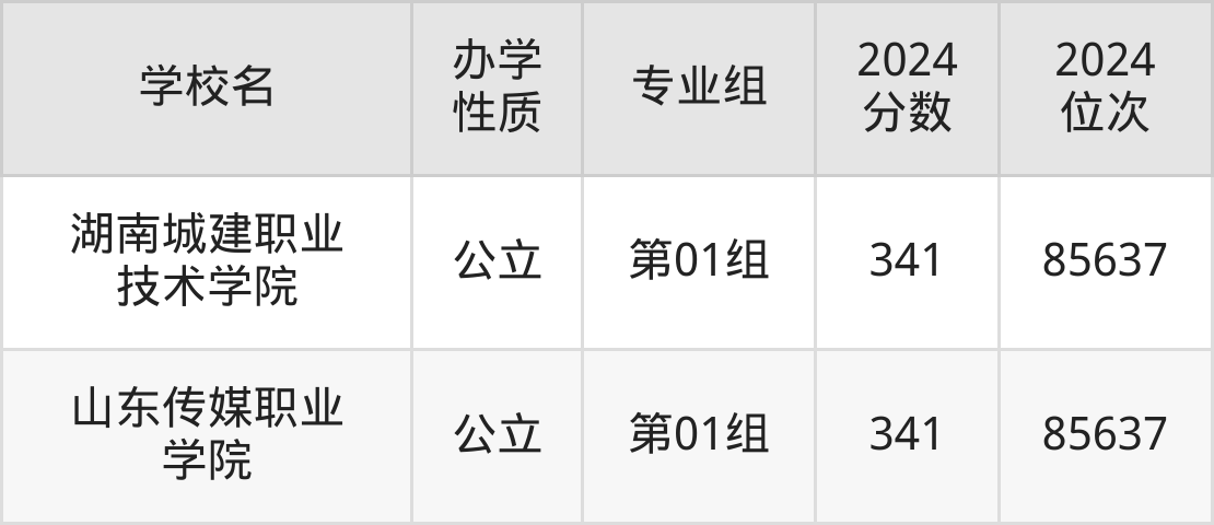 | 山东传媒职业 学院 | 第01组 | 341 | 85637 |