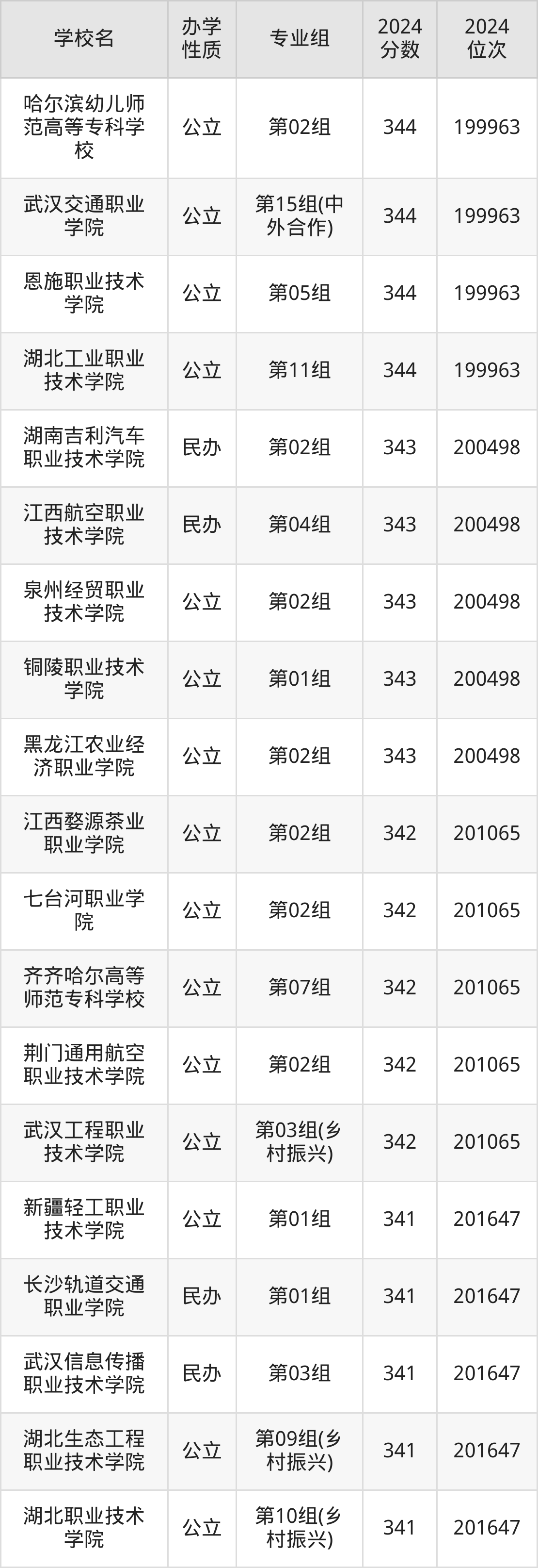 | 湖北工程职业 学院 | 第01组 | 343 | 84739 |