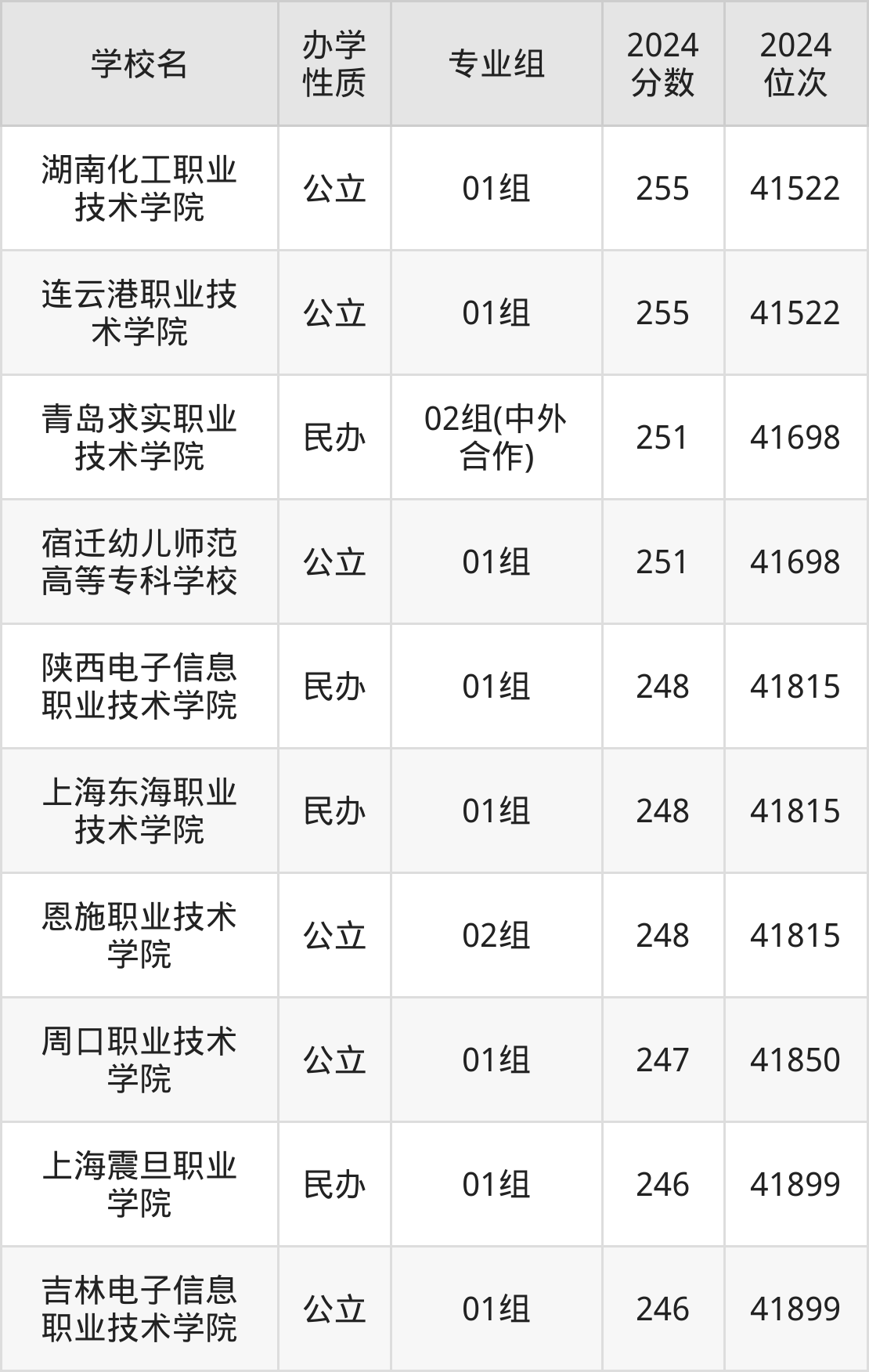 | 学校名 | 专业组 | 2024 分数 | 2024 位次 |