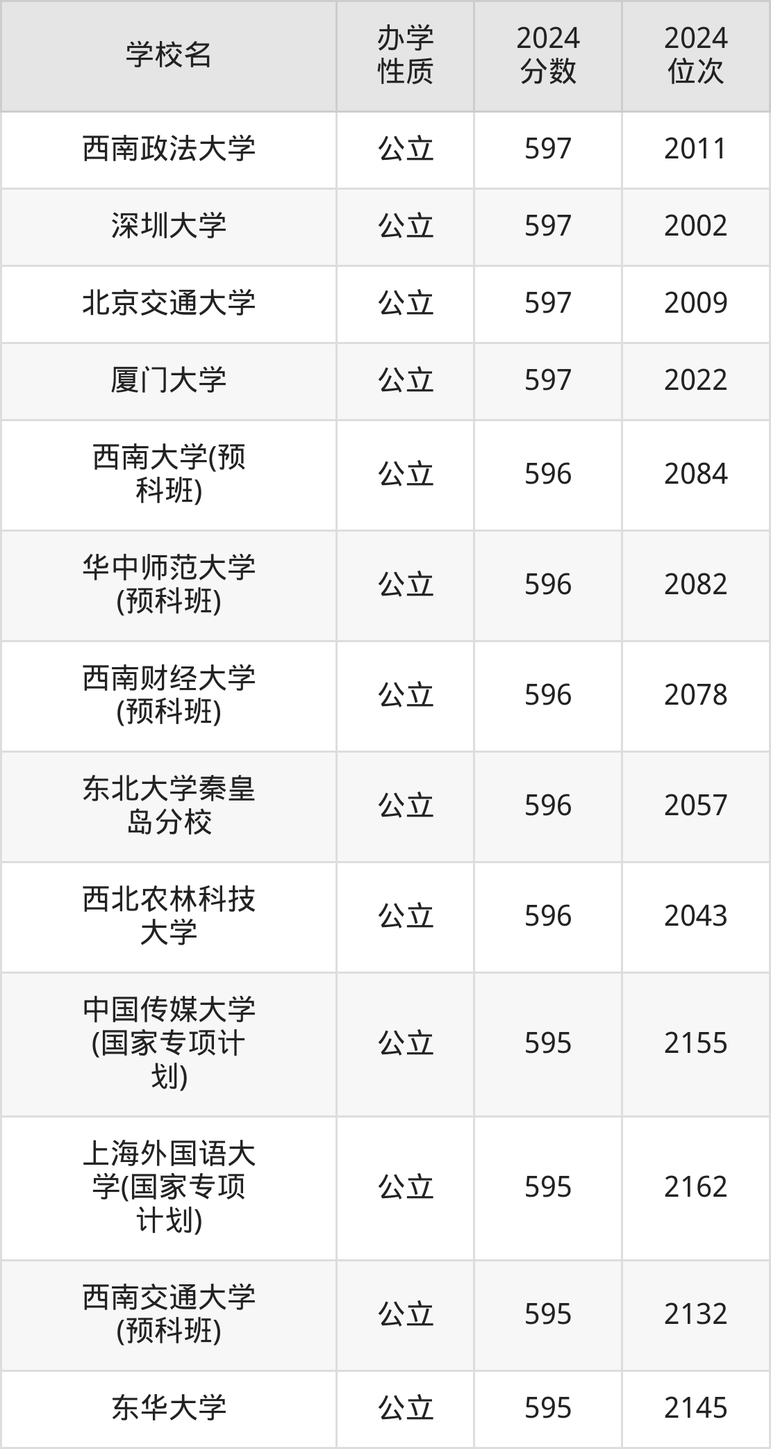 2024年贵州历史类600分考生能上西北农林科技大学、东北大学秦皇岛分校、厦门大学、中国海洋大学、大连理工大学等10所985院校,具体录取分数线及位次为: