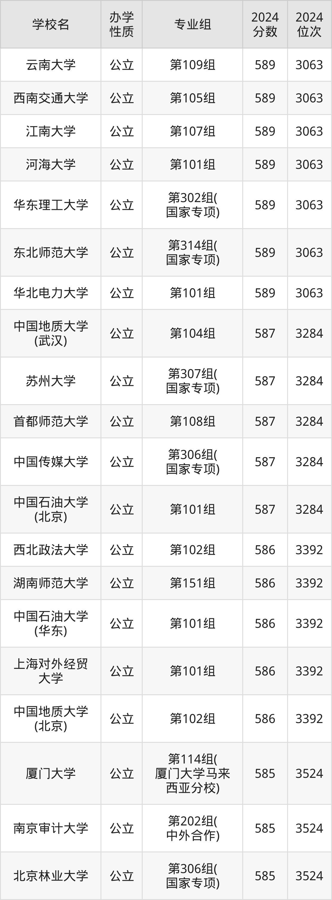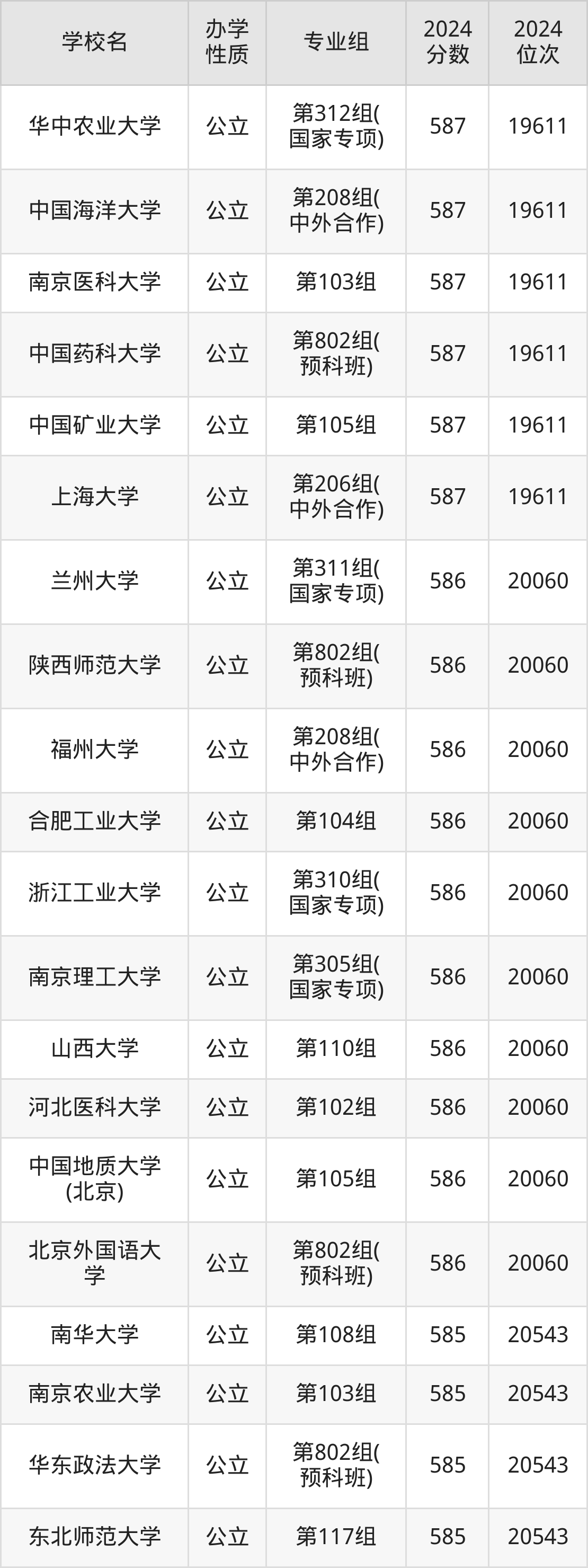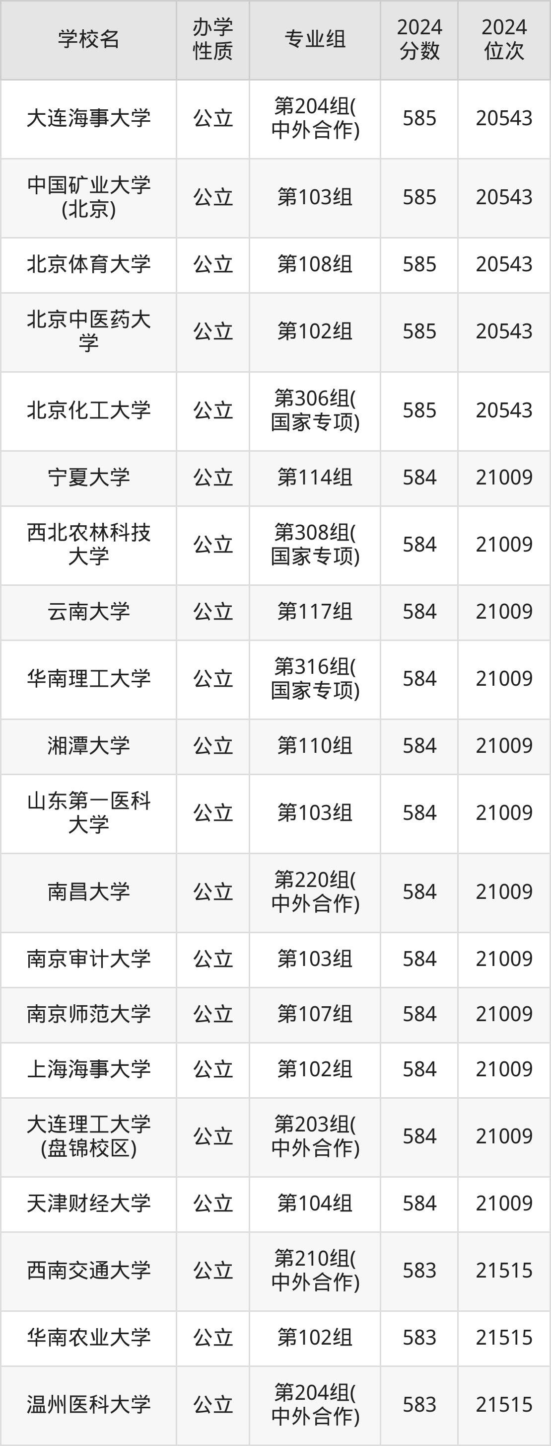 | 学校名 | 专业组 | 2024 分数 | 2024 位次 |