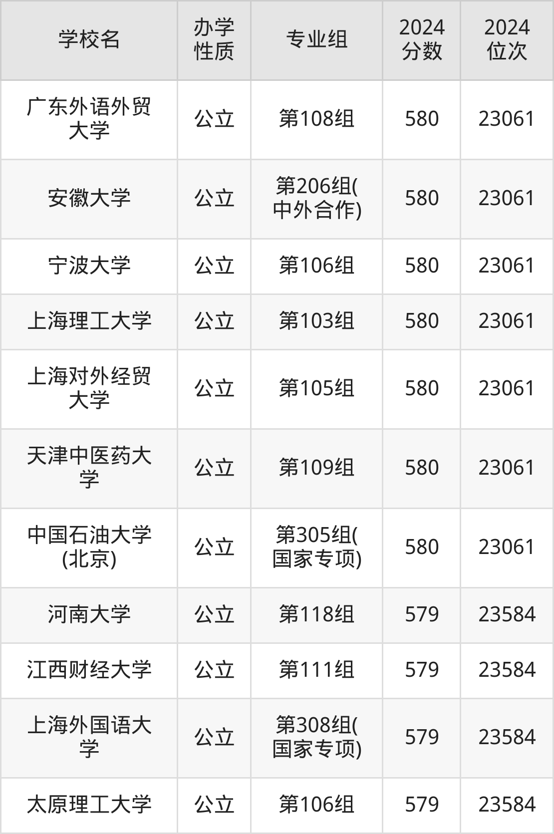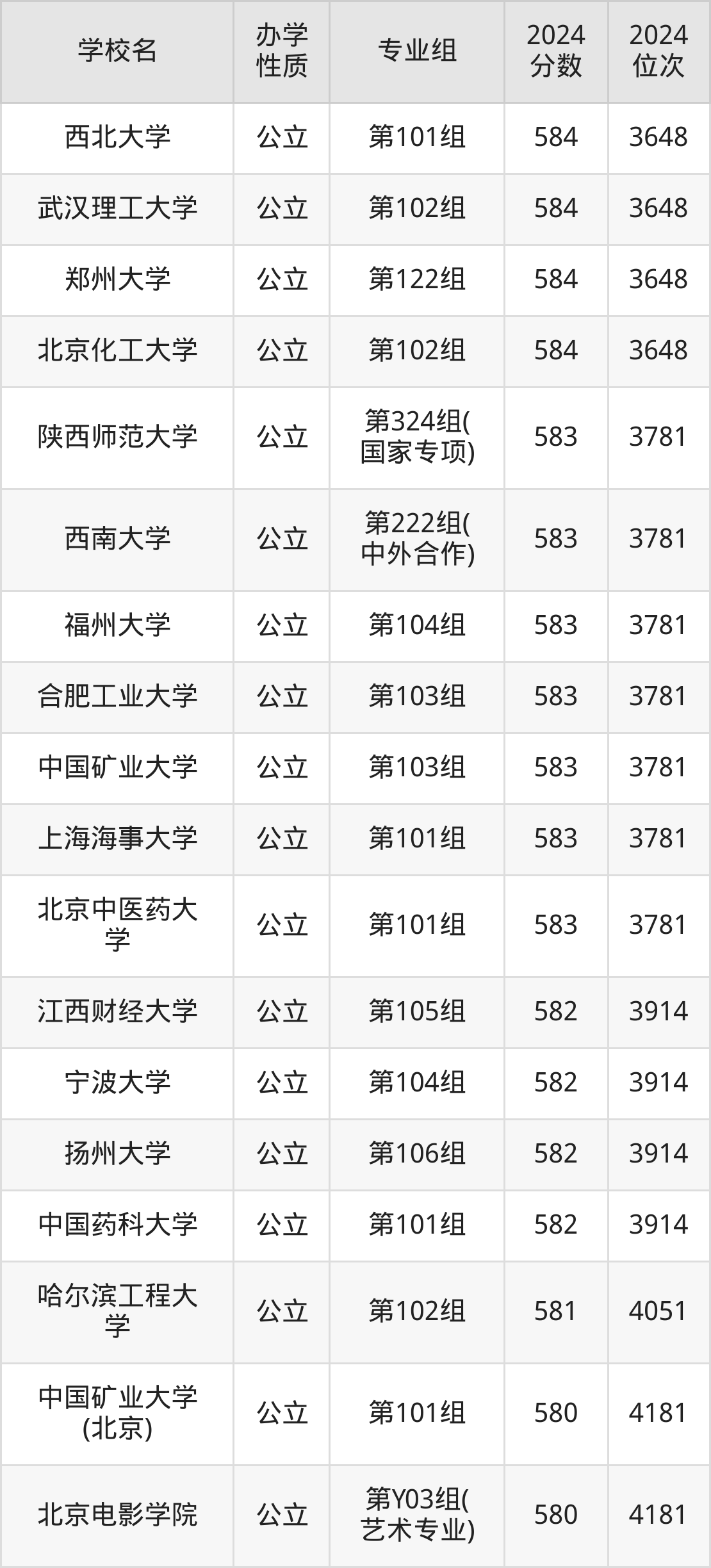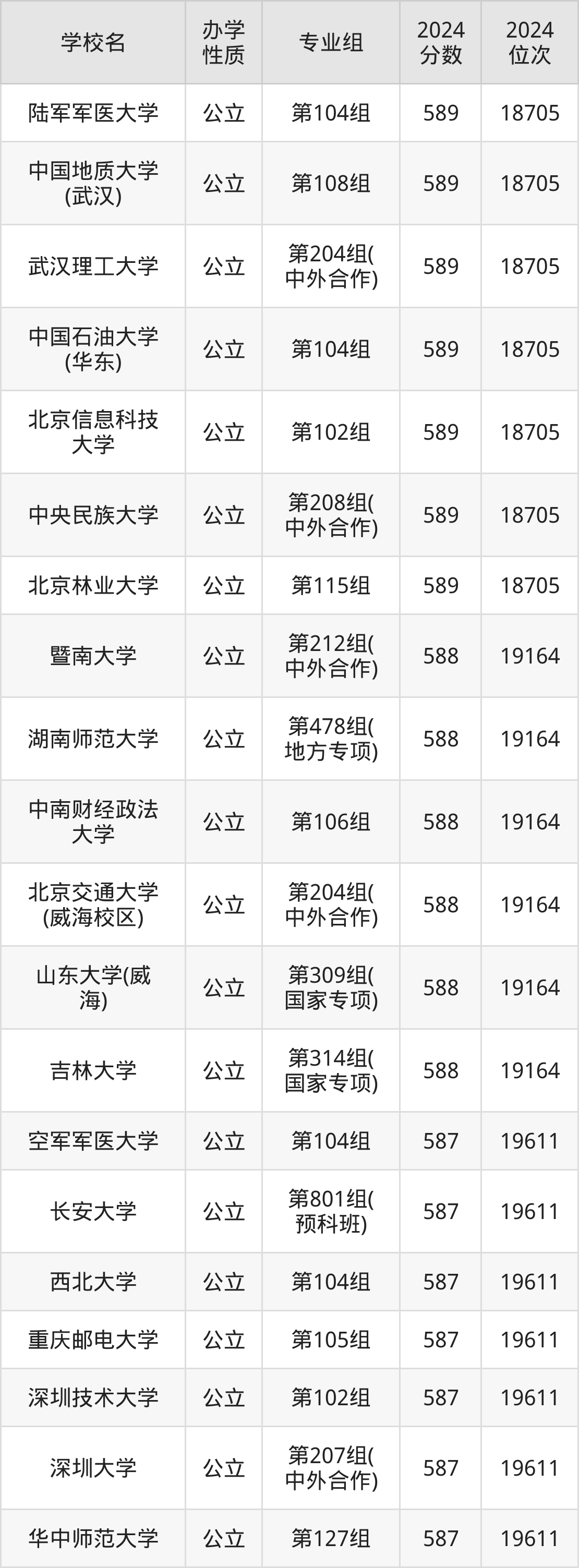 | 学校名 | 专业组 | 2024 分数 | 2024 位次 |