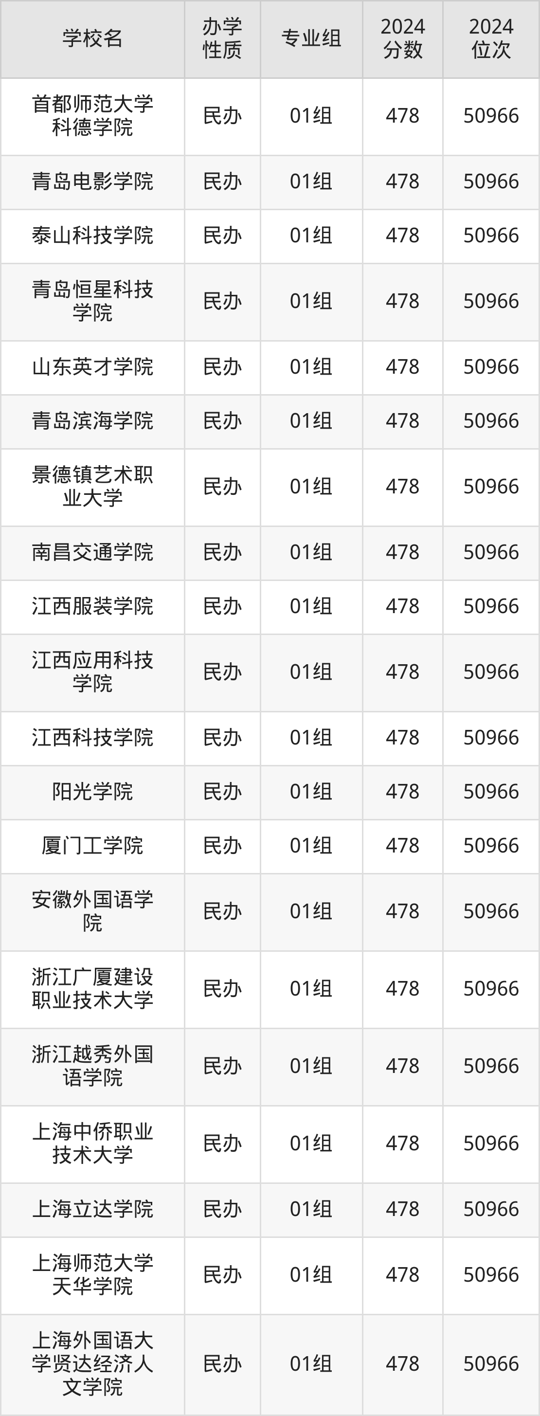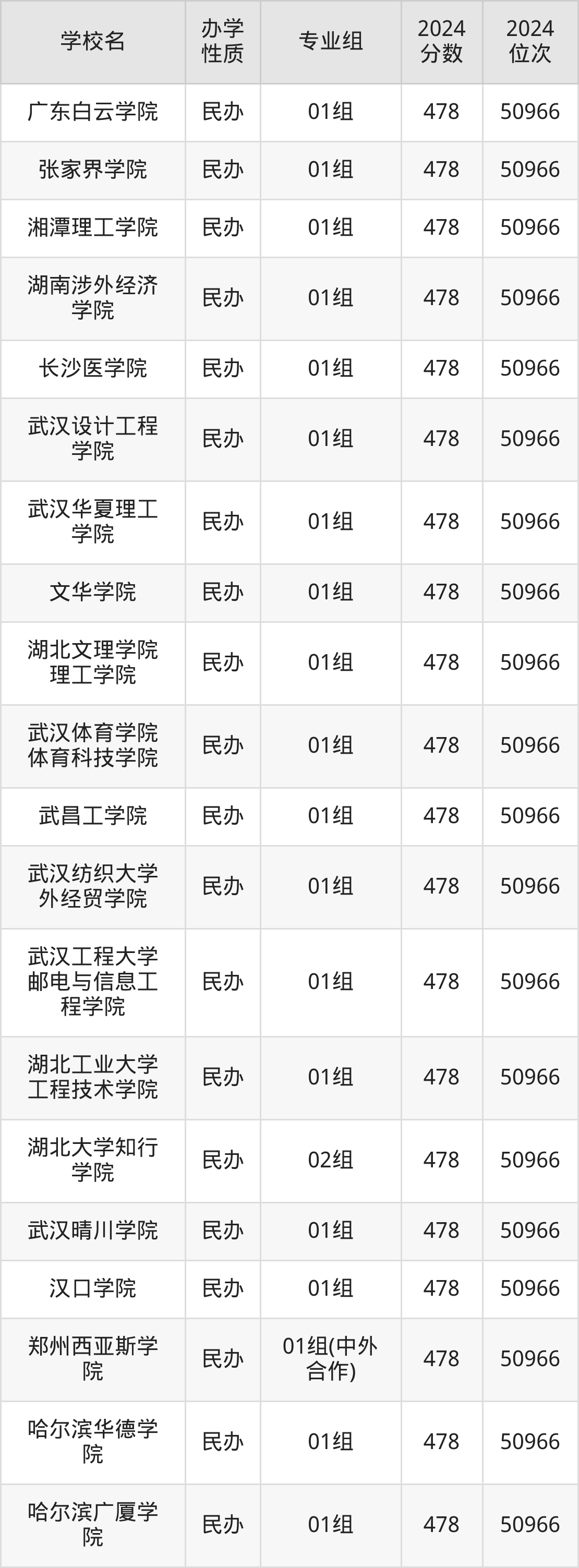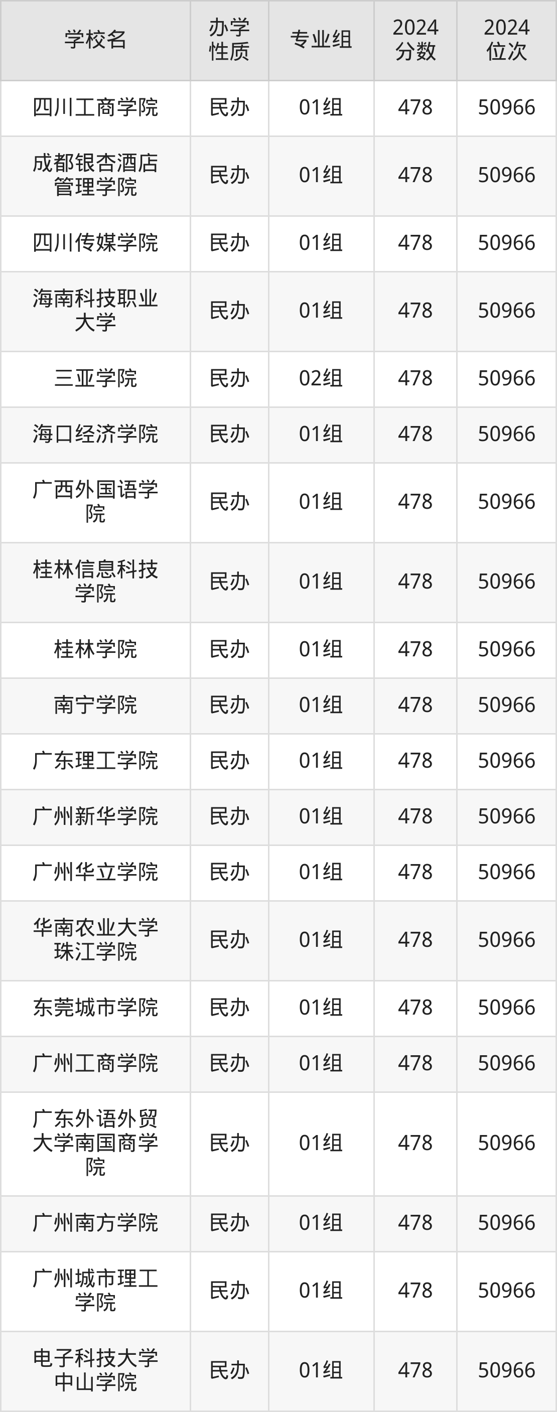 | 三亚学院 | 03组(中外 合作) | 479 | 170310 |