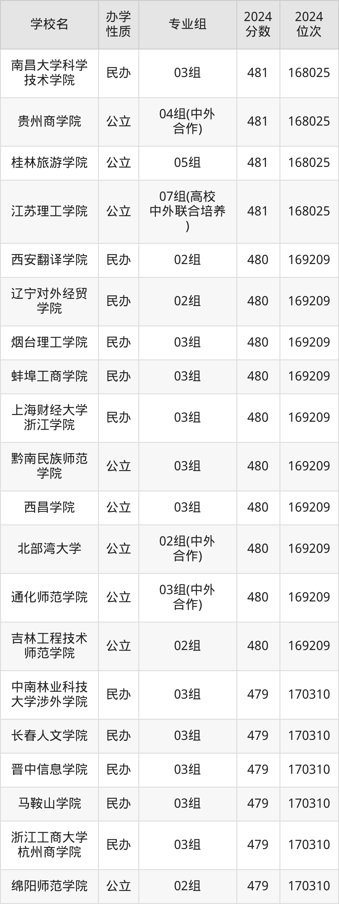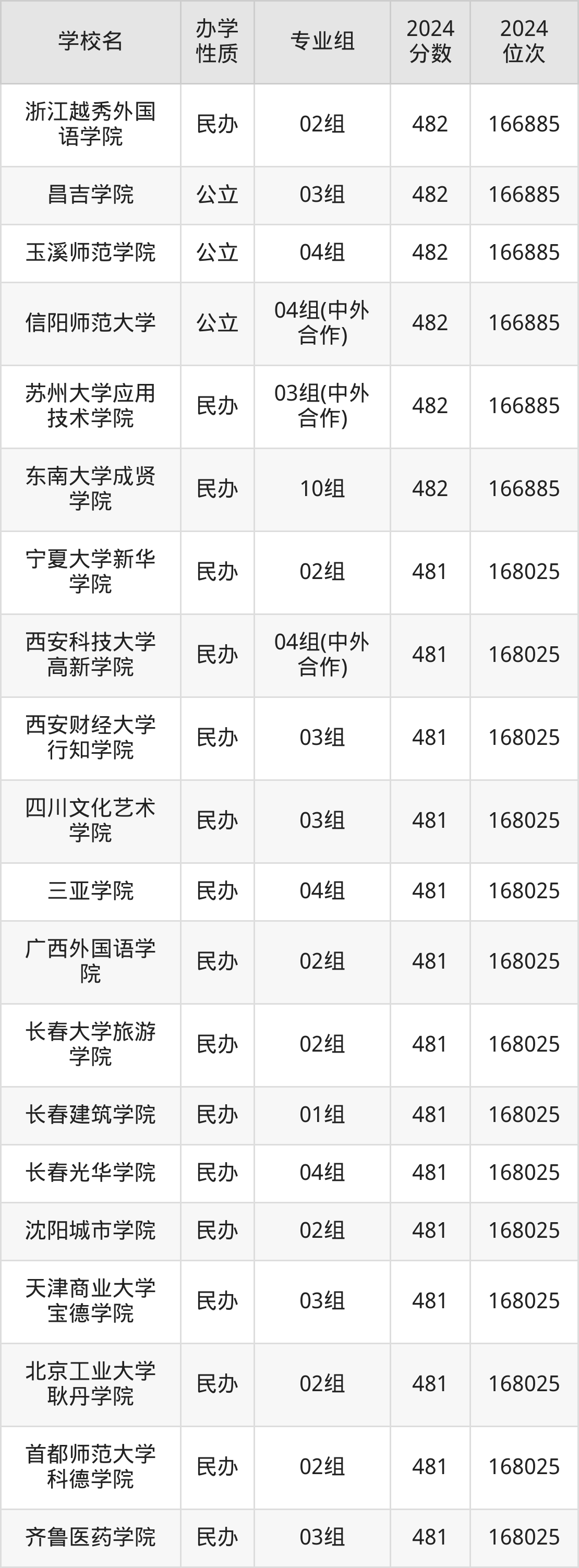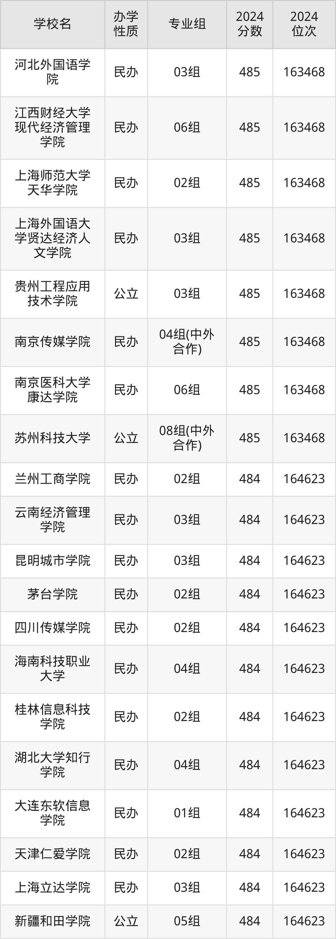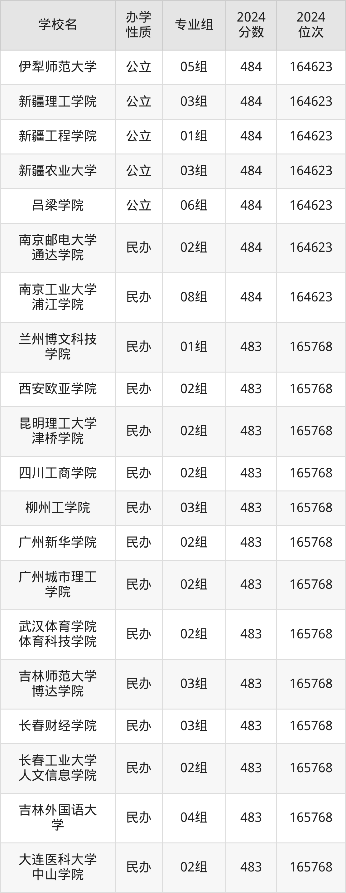 | 学校名 | 专业组 | 2024 分数 | 2024 位次 |