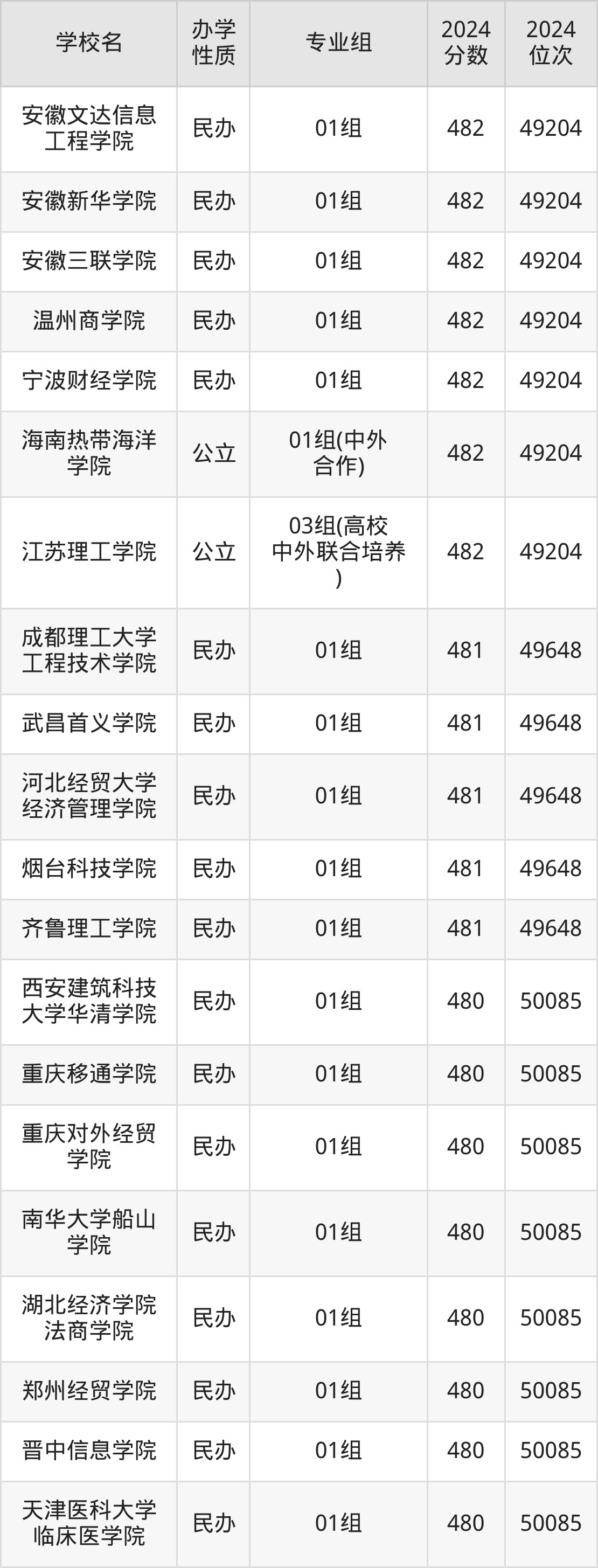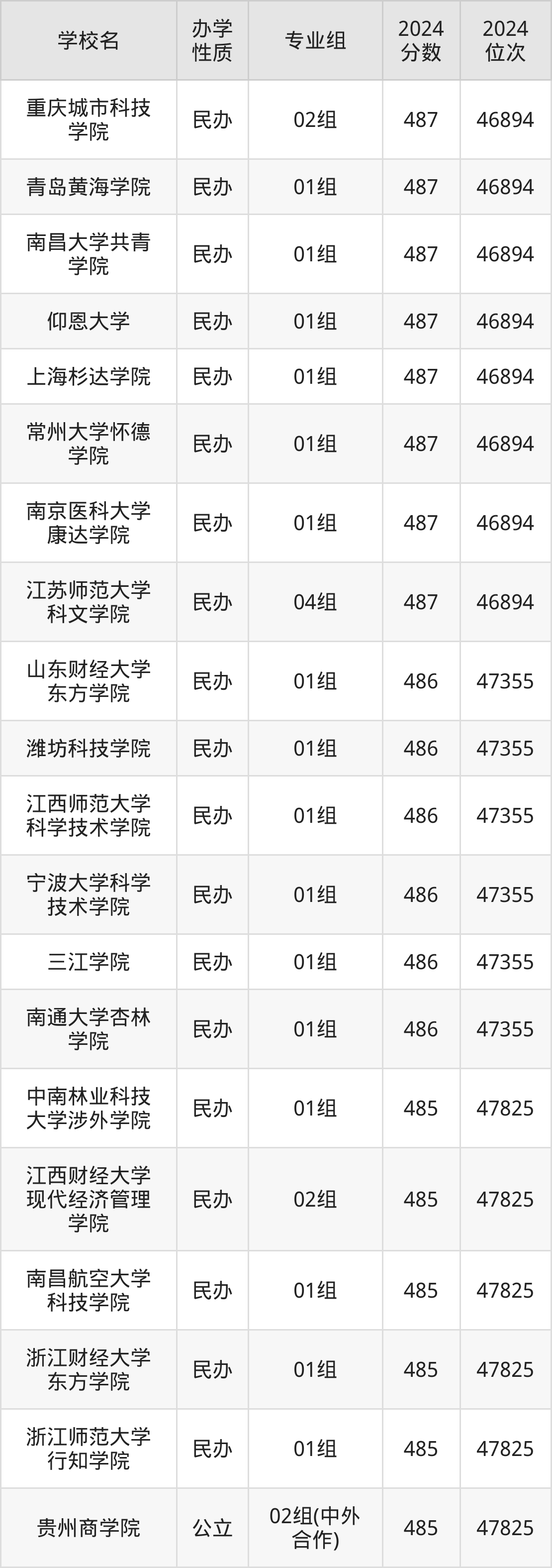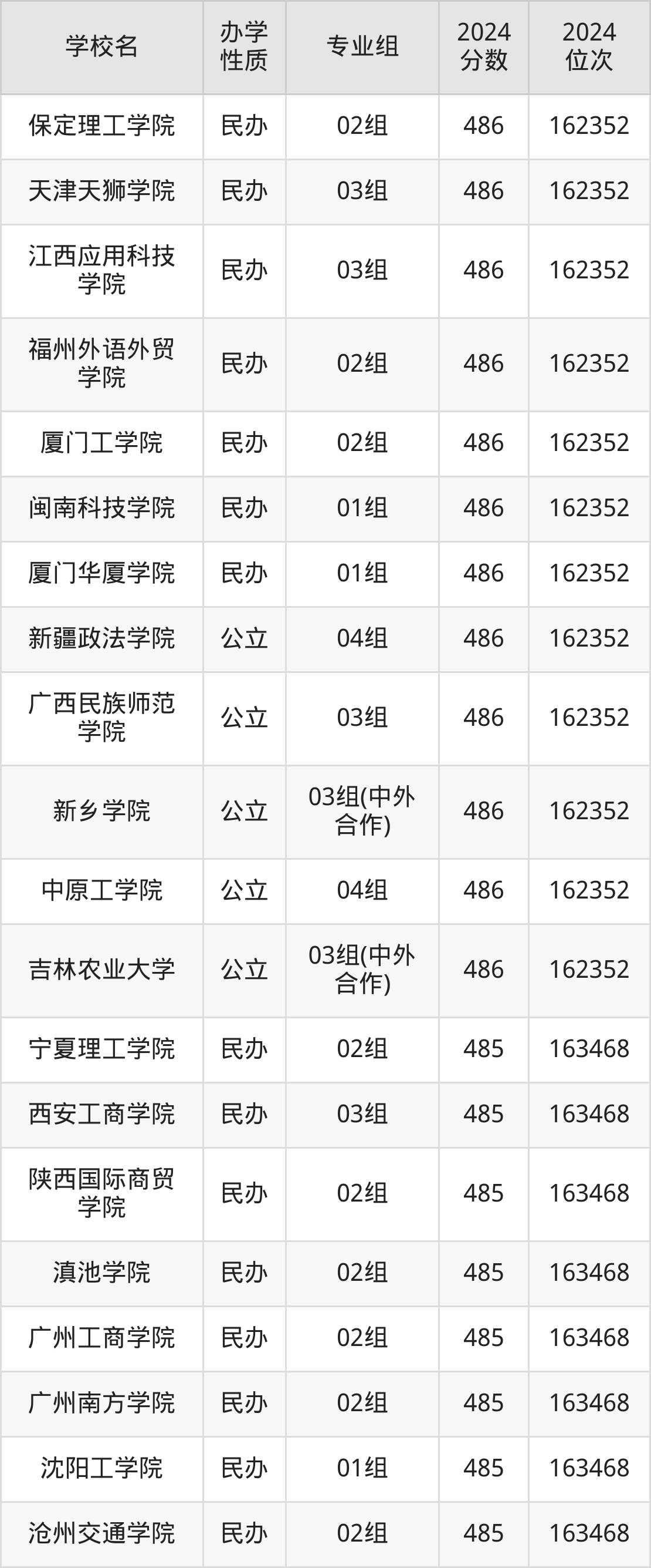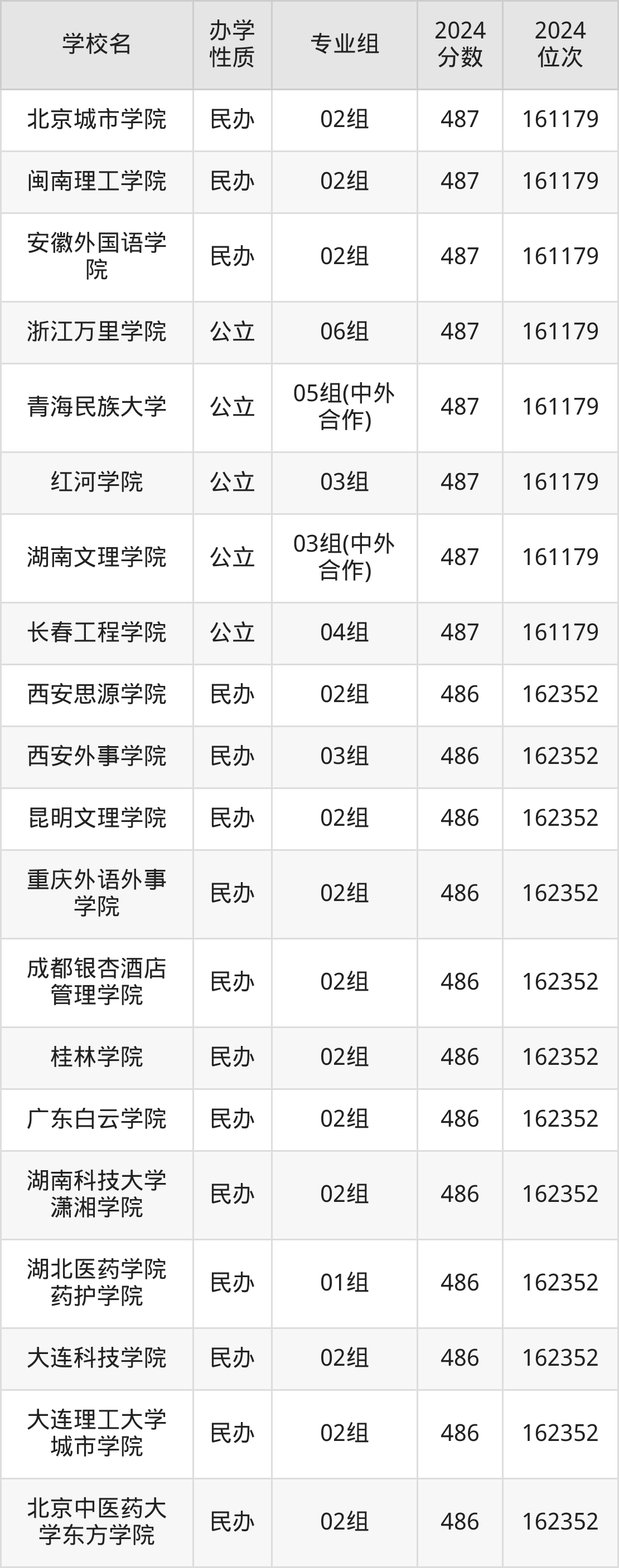| 学校名 | 专业组 | 2024 分数 | 2024 位次 |