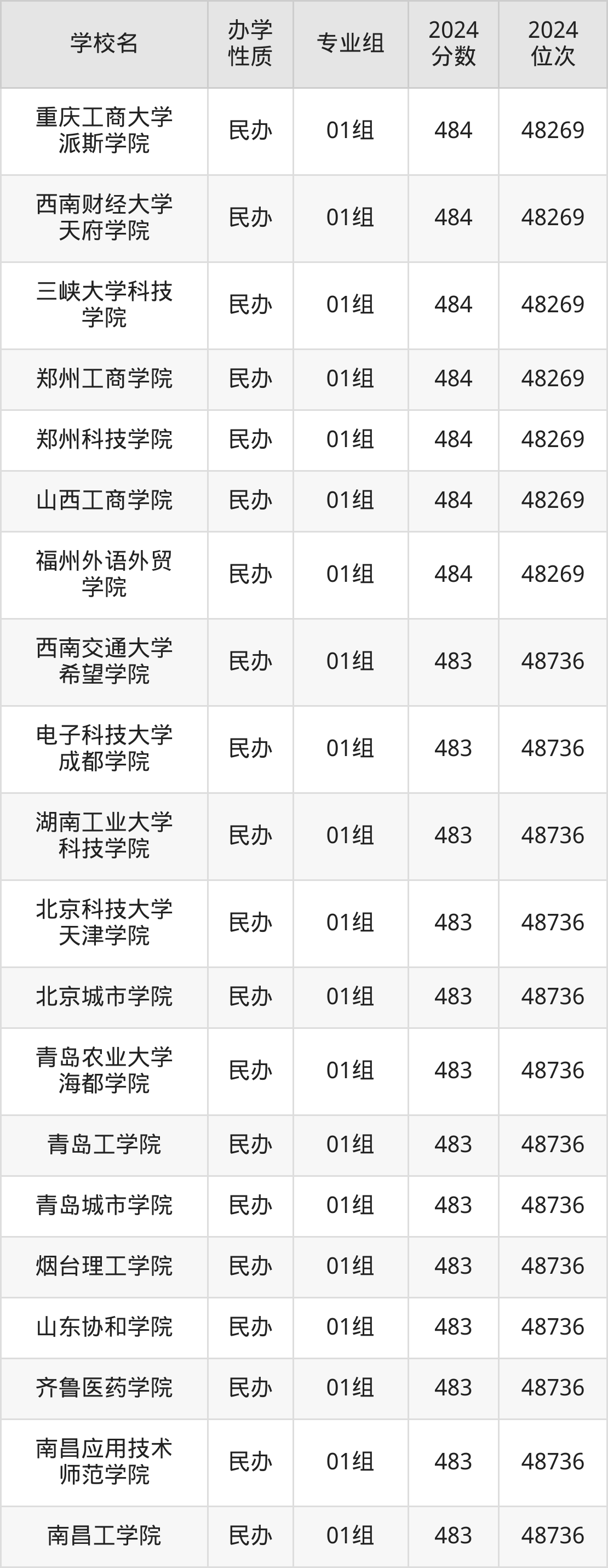 | 成都东软学院 | 01组 | 479 | 50547 |