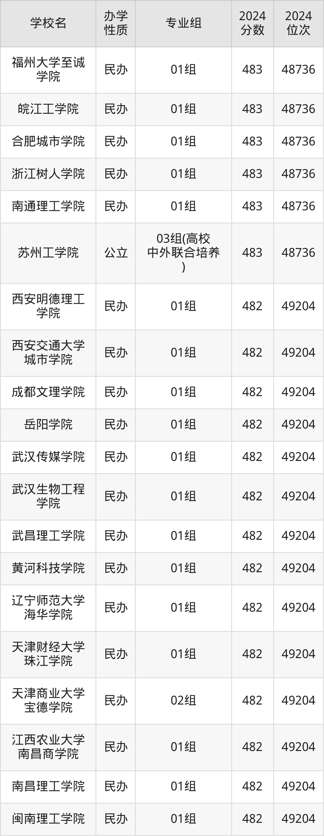 | 西安明德理工 学院 | 01组 | 482 | 49204 |