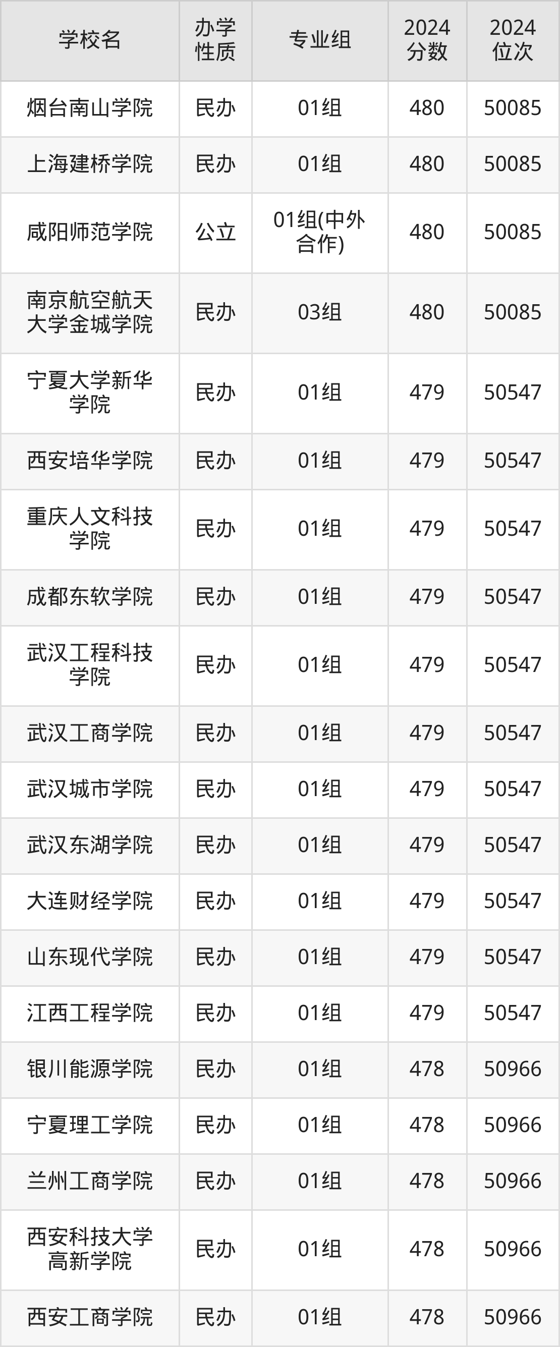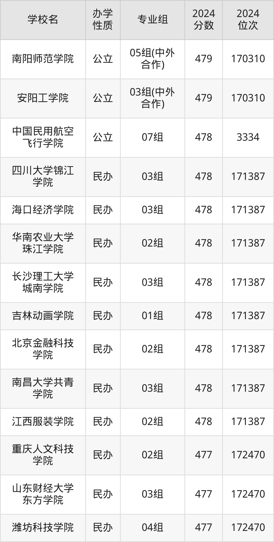 | 安阳工学院 | 01组(中外 合作) | 479 | 170310 |