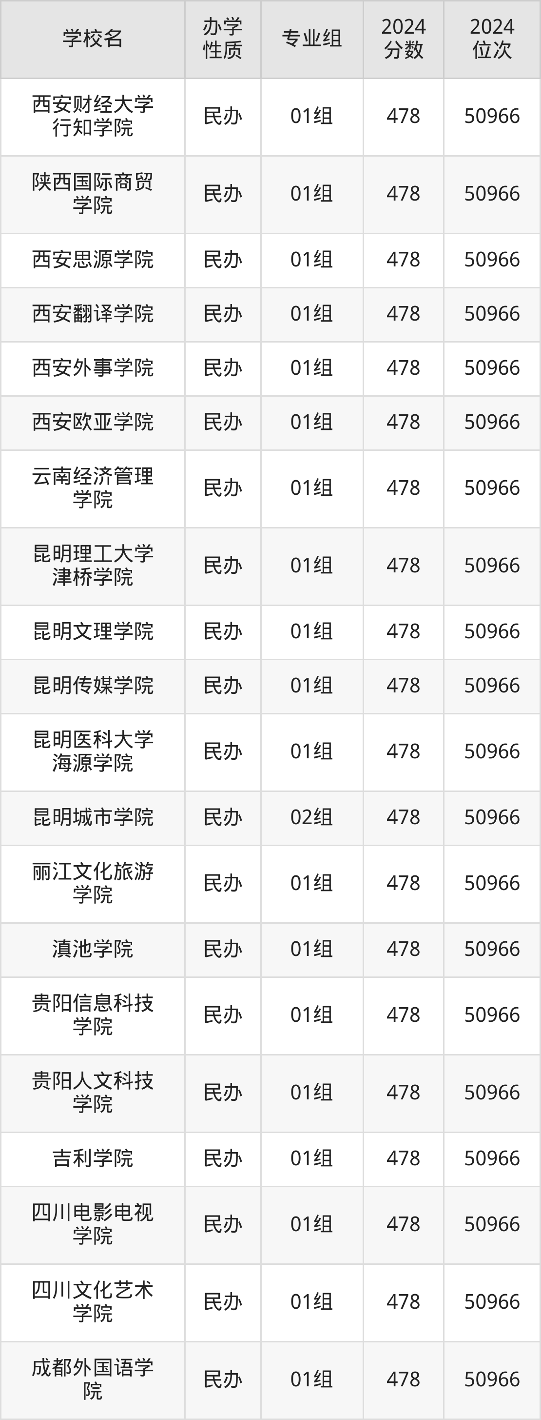 | 西安培华学院 | 01组 | 479 | 50547 |